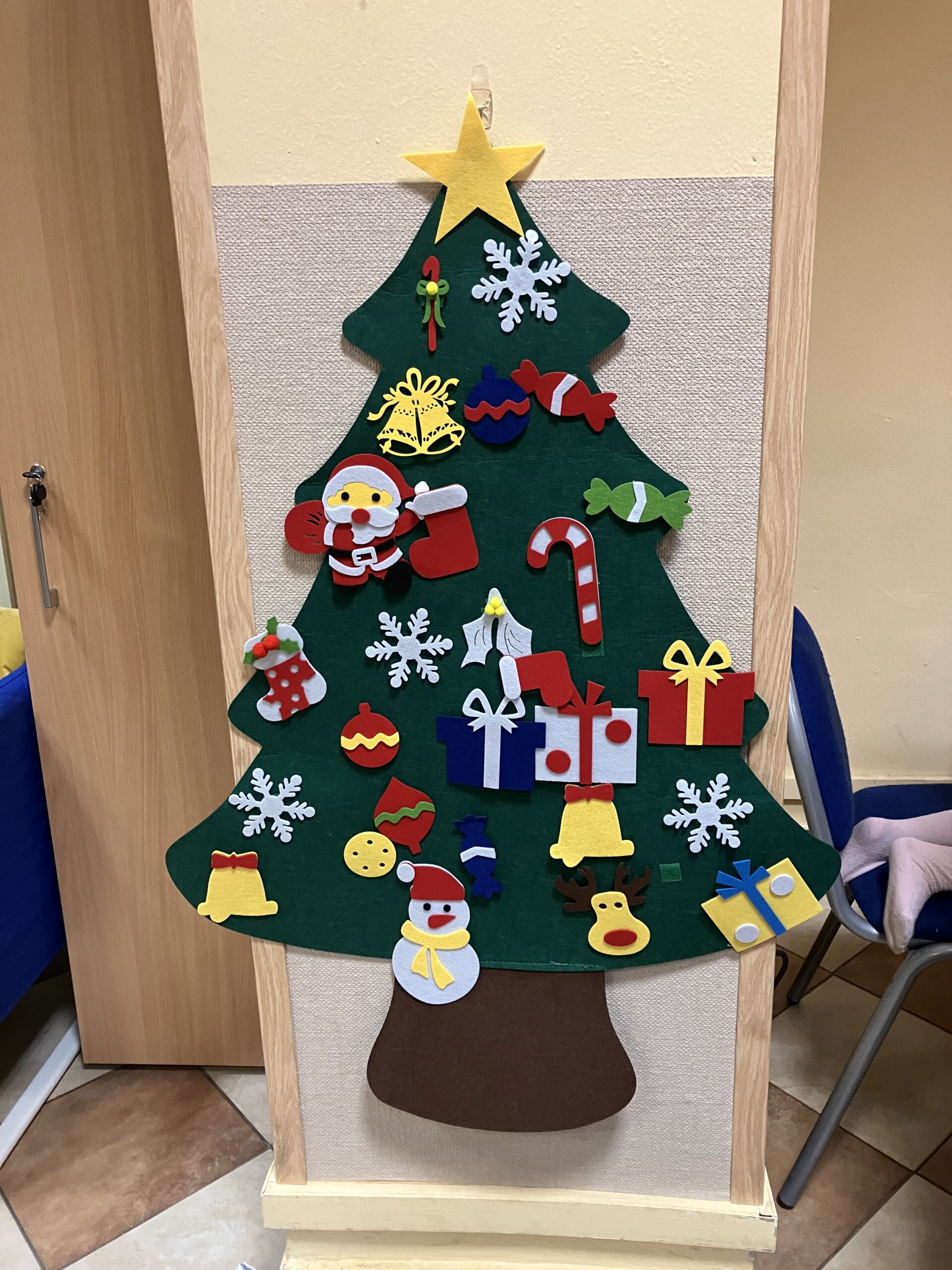 Dzieci udekorowały również naszą naścienną choinkę, która teraz prezentuje się bardzo ładnie i kolorowo. Wraz z rodzicami dzieci wykonały świąteczne wianki. Praca plastyczna zaangażowała wszystkich na dość długo, ale efekty były bardzo spektakularne.