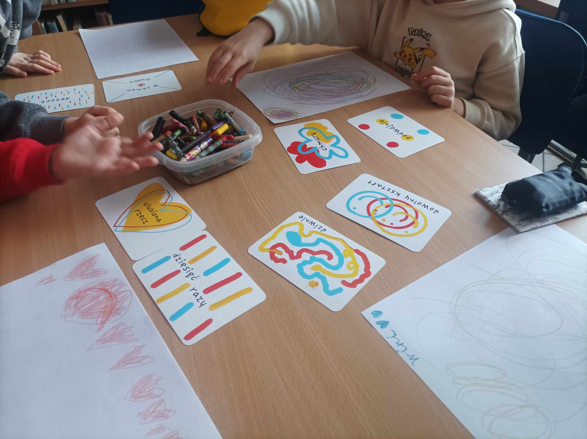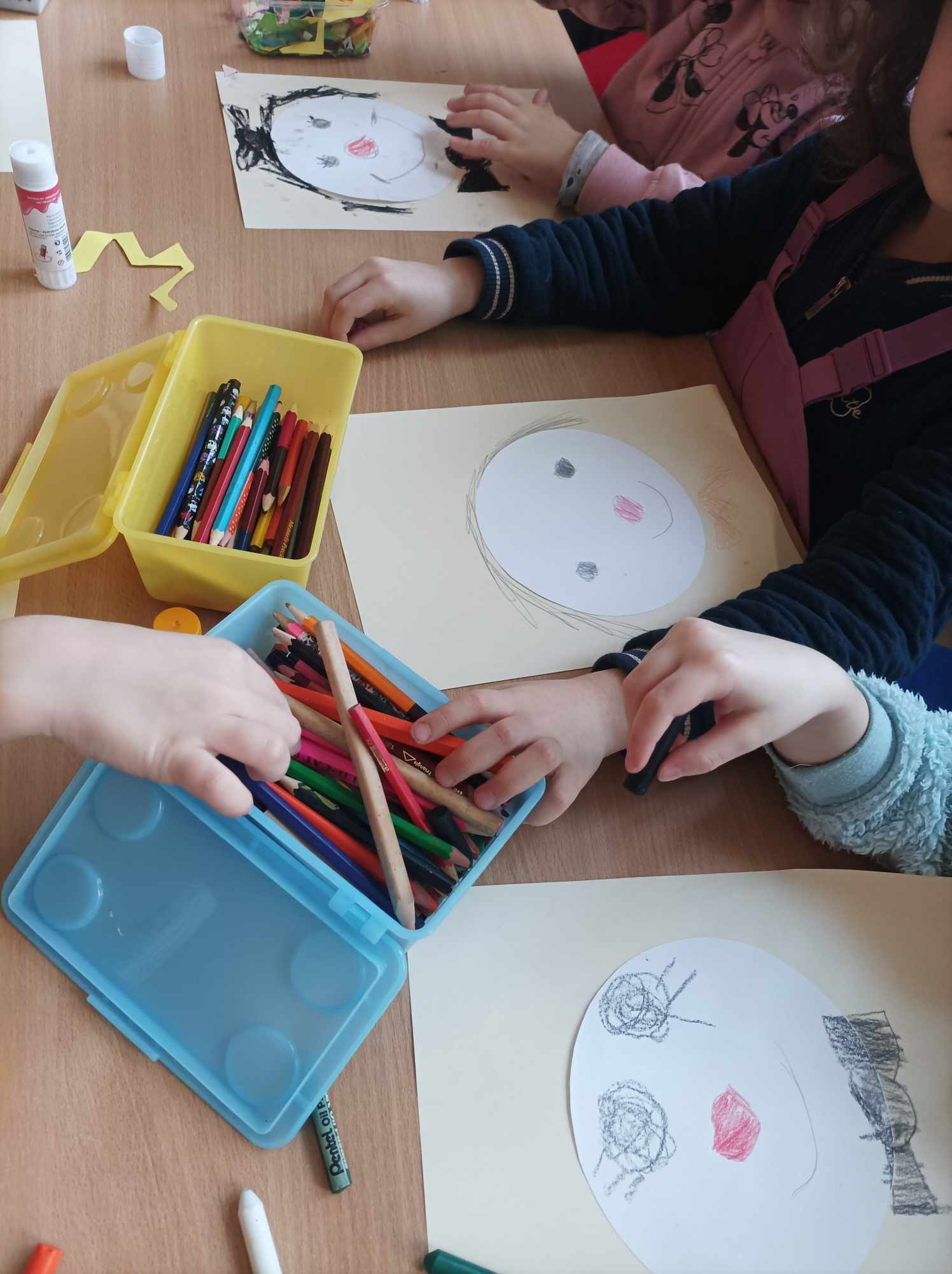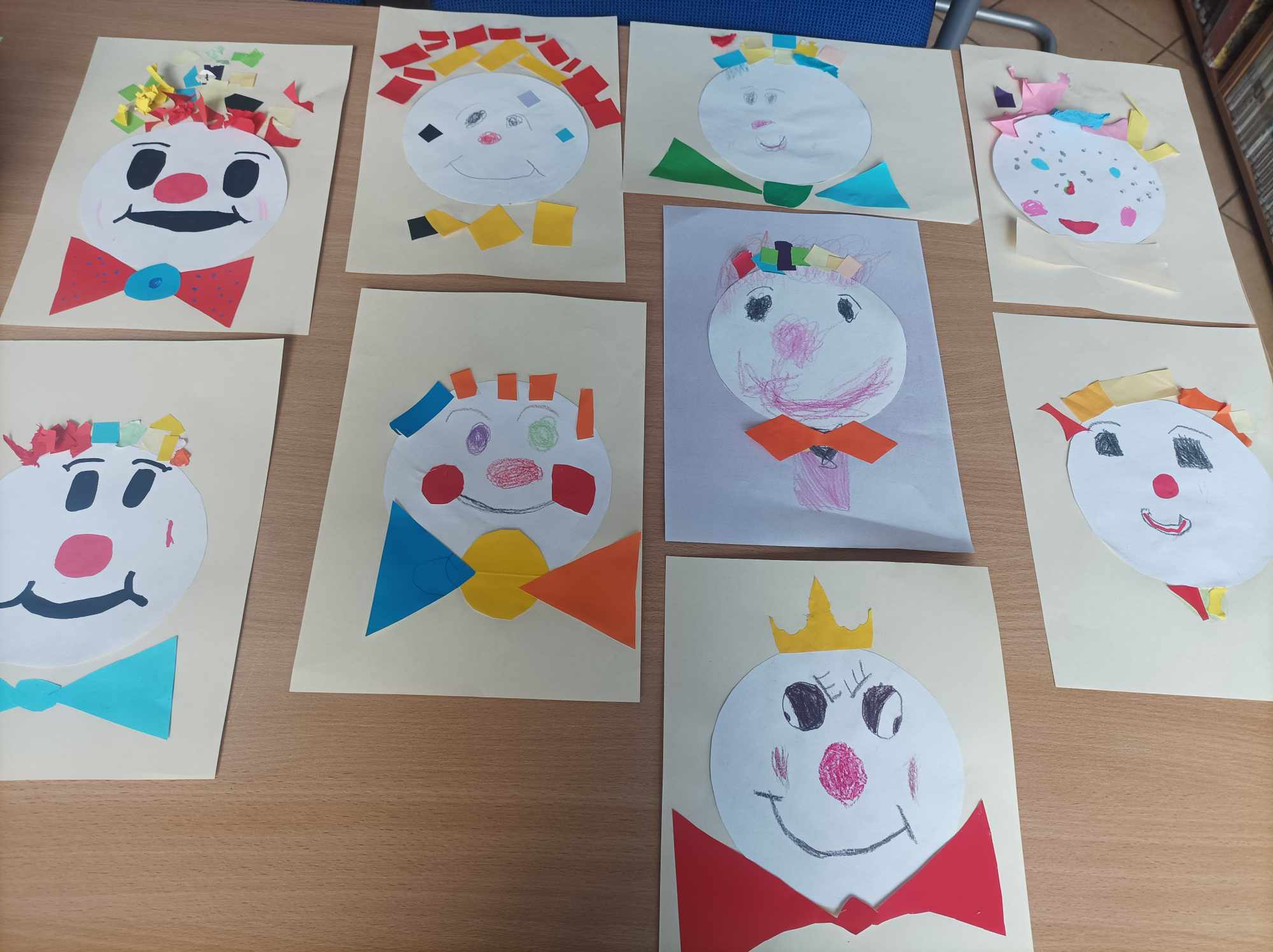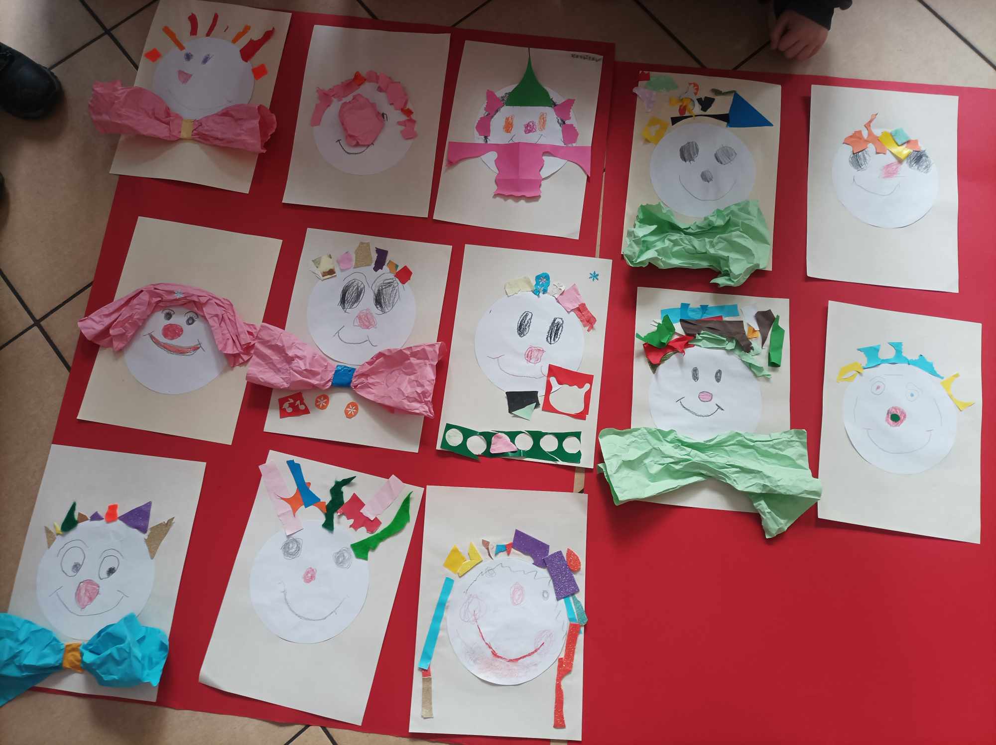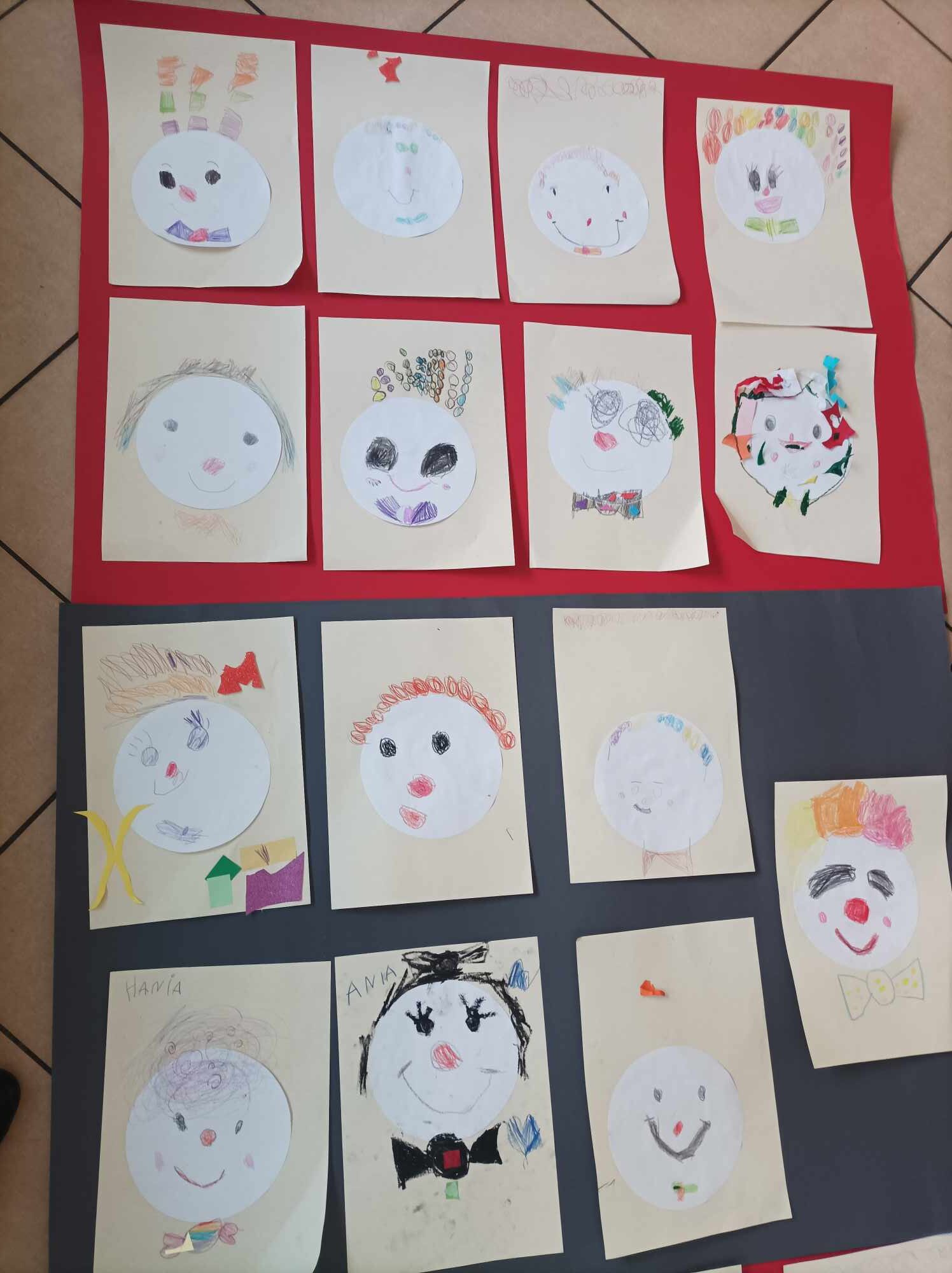 W kąciku plastycznym bohaterem był klaun. Dzieci dowiedziały się, że jest to osoba, która nie tylko bawi i rozśmiesza ludzi w cyrku lub podczas festynów. Klauni zwani „Czerwonymi noskami” odwiedzają dzieci w szpitalach i pomagają im przetrwać ciężkie chwile. Nasi goście stworzyli portrety tych postaci i w ten sposób uhonorowali ich działalność na rzecz najmłodszych. Pierwszaki pograły także w „Rysogrę” wymyśloną przez Hervé Tulleta. Przedszkolaki zatańczyły do piosenki „Clap, clap song”, a zgniecione, kolorowe kartki papieru, które „powstały” podczas tańca, wykorzystały do stworzenia nosów i włosów klaunów.