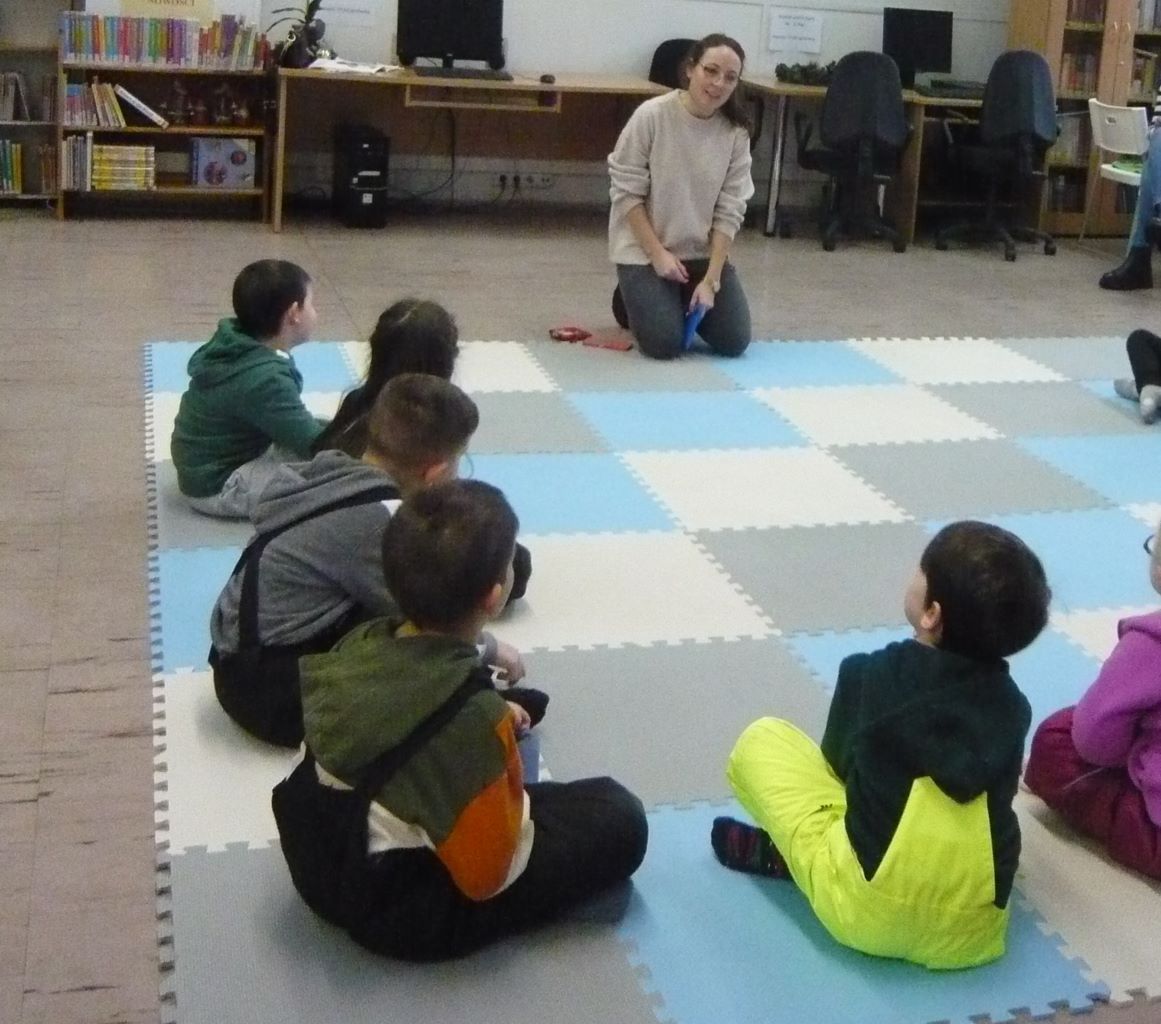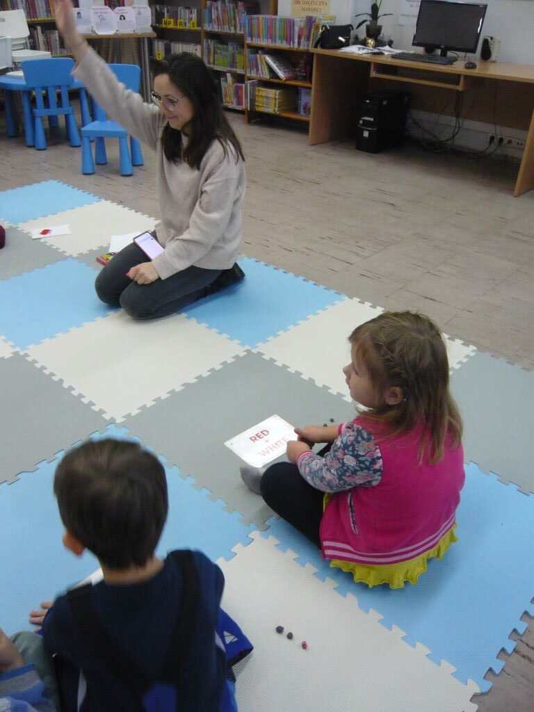 8 grudnia już po raz 3. dzieci z Przedszkola nr 120 spotkały się w Bibliotece dla Dzieci i Młodzieży nr 65 z Panią Karoliną na zajęciach, aby bawić się i uczyć języka angielskiego. „Czytanie na dywanie” to zajęcia dla przedszkolaków organizowane przez Bibliotekę Publiczną w Dzielnicy Targówek oraz szkołę językową Early Stage. Na dzisiejszym spotkaniu dzieci uczyły się o kolorach oraz o ich miksowaniu. Uczyły się nazywać kolory w języku angielskim. Co wyjdzie, jeśli połączymy biały z czerwonym czy niebieski z żółtym? Okazało się, że dzieci doskonale orientują się, jakie barwy pojawią się po połączeniu różnych kolorów. Dodatkowo pani lektorka poprowadziła krótką zabawę muzyczną – oczywiście również w języku angielskim. Sprawiło to dużą radość przedszkolakom.