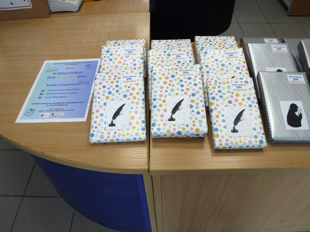 W ramach Warszawskich Dni Seniora w Wypożyczalni dla Dorosłych i Młodzieży nr 64 przy ul. Radzymińskiej 121 miała miejsce akcja „Książka-niespodzianka dla seniora”. W dniach 1–3 października czytelnicy mogli wybrać dla siebie książkę zapakowaną w papier prezentowy. Egzemplarze były podzielone na trzy kategorie: obyczaj, kryminał oraz literatura popularnonaukowa.