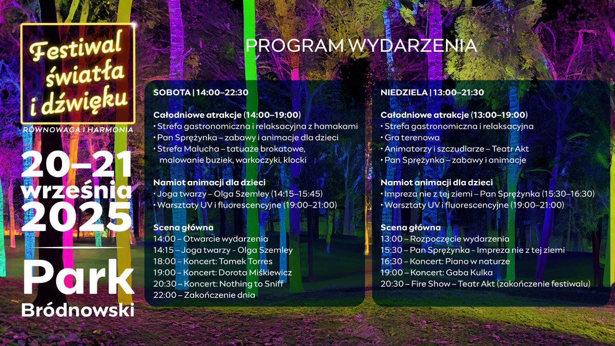 „Festiwal Światła i Dźwięku” to wydarzenie, które Urząd Dzielnicy Targówek realizuje w wyjątkowym miejscu – zielonej enklawie Parku Bródnowskiego.