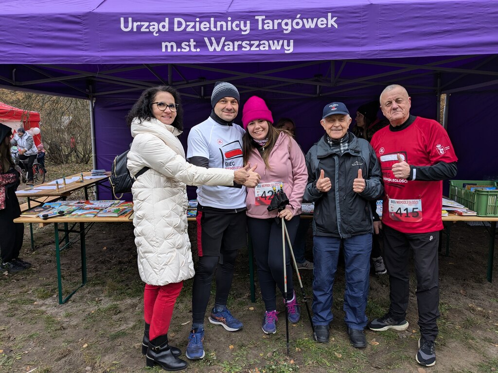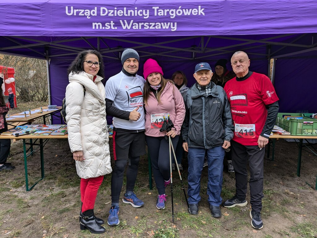 Wszyscy najpierw zaśpiewali hymn, a następnie radośnie powiewali biało-czerwonymi flagami, cieszyli się każdym krokiem na trasie w pięknym Lesie Bródnowskim, a na mecie otrzymywali medale pamiątkowe i nagrody wręczane przez Zastępczynię Burmistrza Dzielnicy Targówek Katarzynę Górską-Manczenko oraz radnych Dzielnicy Targówek: Justynę Rucyk i Witolda Harasima. Wśród uczestników była Joanna Prażmowska, kierowniczka Biblioteki Pedagogicznej nr 130! W zawodach wziął również udział jej mąż.