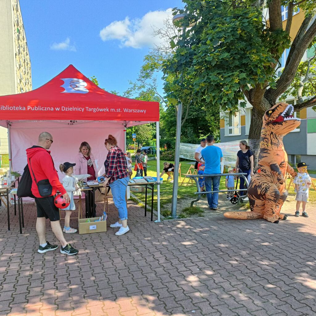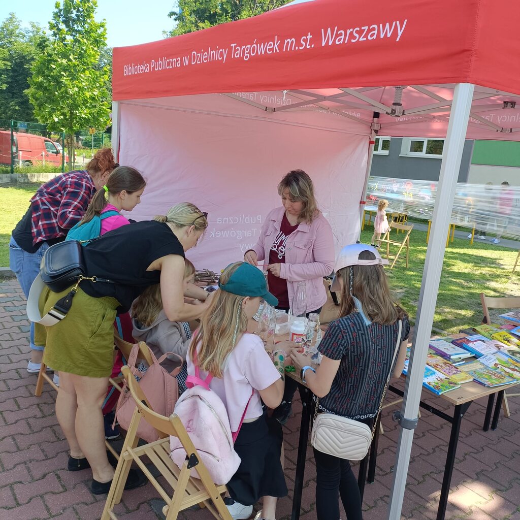 Promieniejąca atrakcjami Biblioteka na pikniku rodzinnym w SP 285