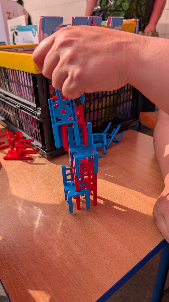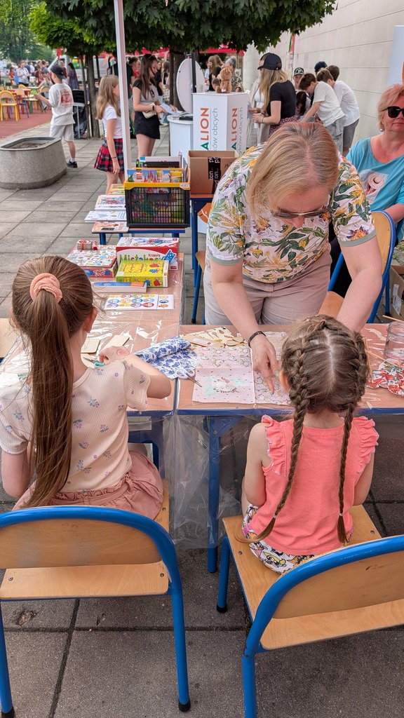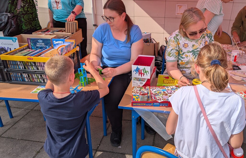Nie zabrakło atrakcji dla małych i dużych – książki za grosik znikały w mgnieniu oka, warsztaty decoupage zachęcały do artystycznych eksperymentów, a przy planszówkach toczyły się zacięte, choć pełne śmiechu rozgrywki.