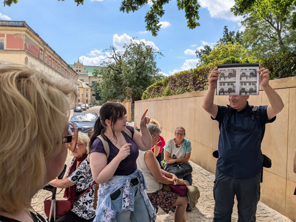 Podczas spaceru, który dotyczył m.in. historii Czytelni Naukowej nr 1 oraz dziejów Janiny Englert, dowiedzieliśmy się wielu ciekawostek na temat początków Czytelni i jej pierwszej kierowniczki. Przewodnik Krzysztof Gajda z zaangażowaniem przedstawiał główny temat warsztatów varsavianistycznych i zainteresował wszystkich obecnych.