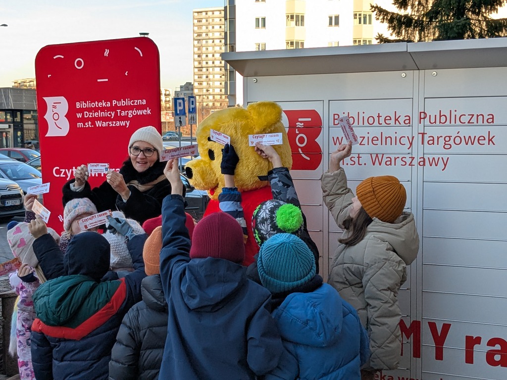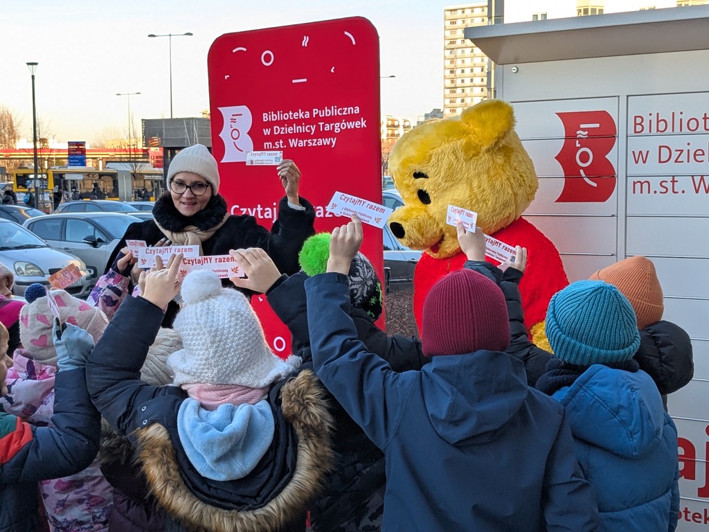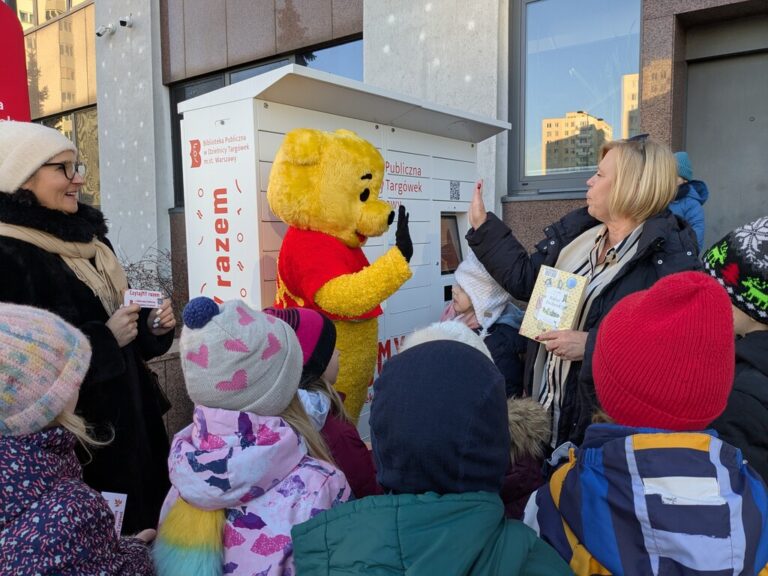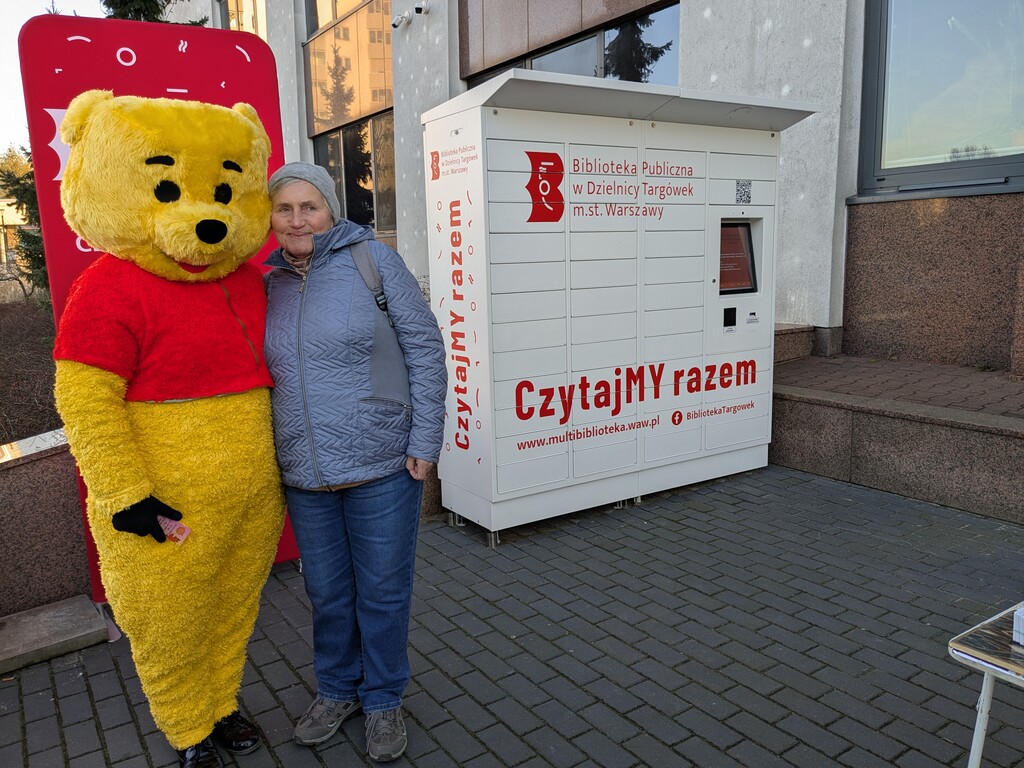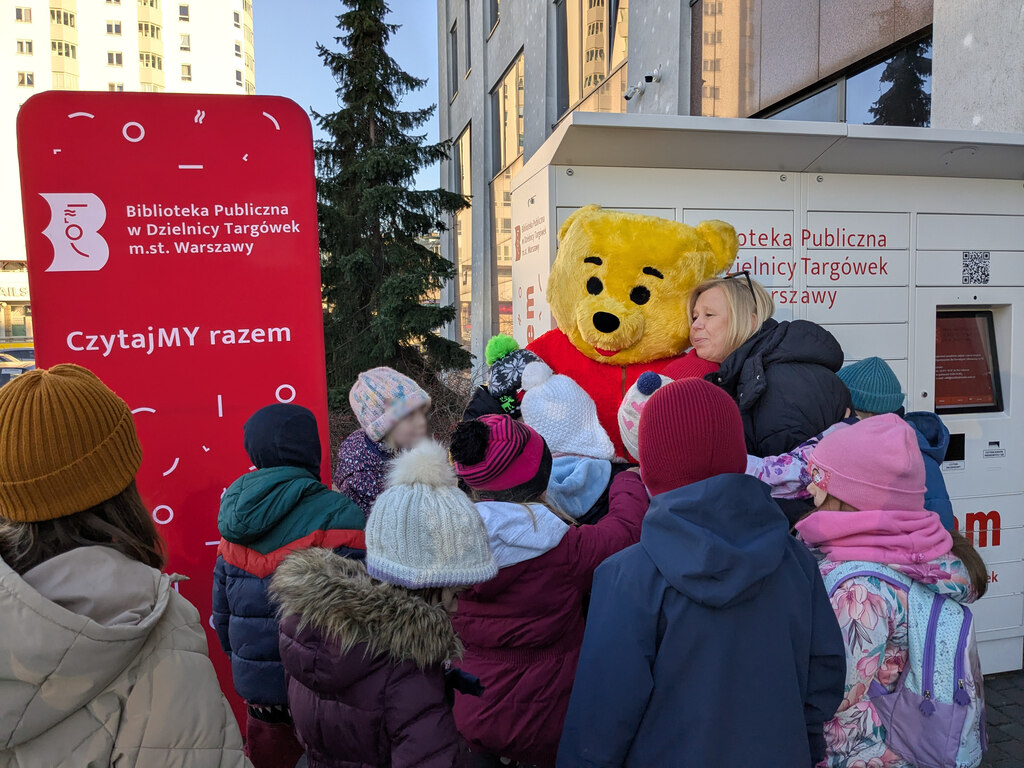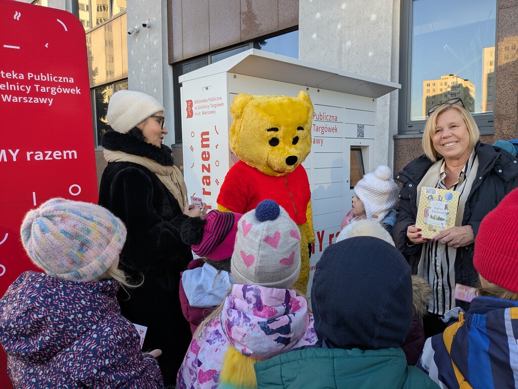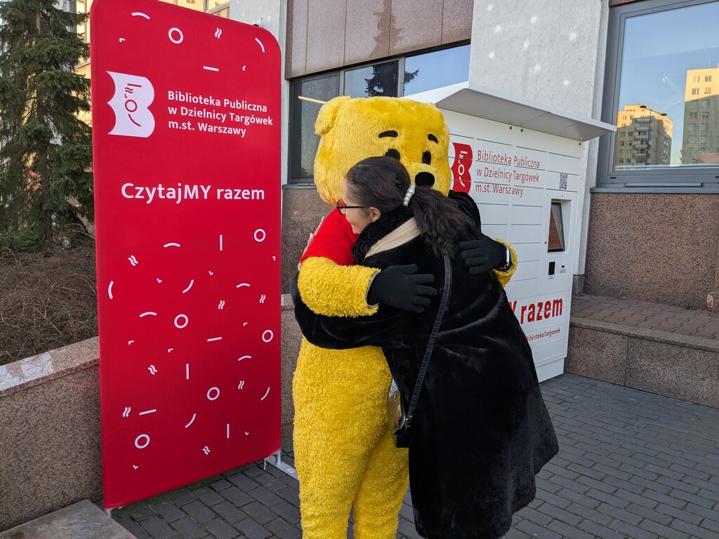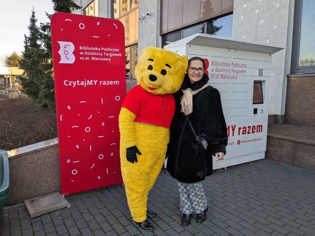 Zewsząd spływały słodkie słowa życzeń roziskrzonych uśmiechami i oczywiście połączonych z tulu-tulu z dziećmi (również z tymi, które dorosły)… Fragmenty książki A.A. Milne’a przepięknie przeczytały Dorota Kozielska – Zastępczyni Burmistrza Dzielnicy Targówek i Katarzyna Górska-Manczenko – Zastępczyni Burmistrza Dzielnicy Targówek. Zaśpiewaliśmy „Sto lat”, częstowaliśmy uczestników urodzin upominkami, a także zapisywaliśmy nowych czytelników i zaprzyjaźnialiśmy ich z książkomatem.