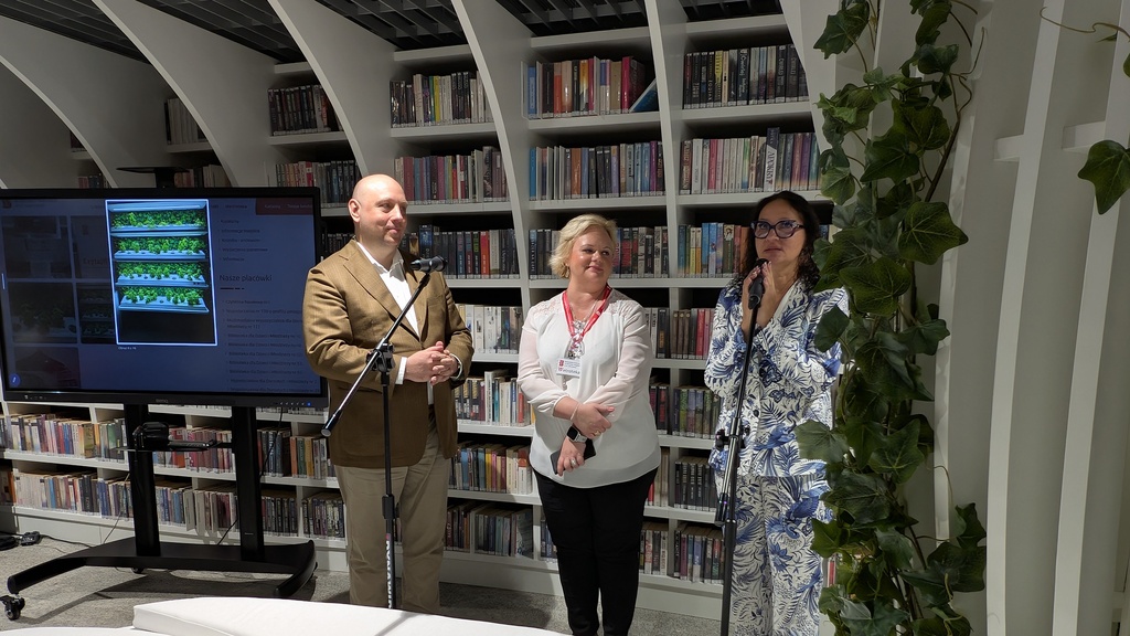 Wzrok wszystkich przyciągała hydroponiczna instalacja edukacyjna, czyli bezglebowa uprawa roślin. W Metrotece pachnie bazylią i rozbrzmiewa kojący szum wody… Natura spotkała się tu z nowoczesnością, tworząc atmosferę świeżości i inspiracji.