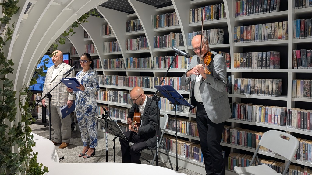 16 tysięcy książek na wyciągnięcie ręki – od nowości i bestsellerów, przez biografie, przewodniki i varsaviana, po bogaty księgozbiór dla dzieci i młodzieży, poradniki, literaturę historyczną, thrillery, fantastykę… Ponadto laptopy do pracy i nauki oraz strefa relaksu. Futurystyczna aranżacja wywołała wśród Gości skojarzenia ze światem Stanisława Lema czy „Star Treka”.