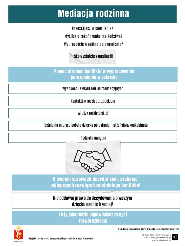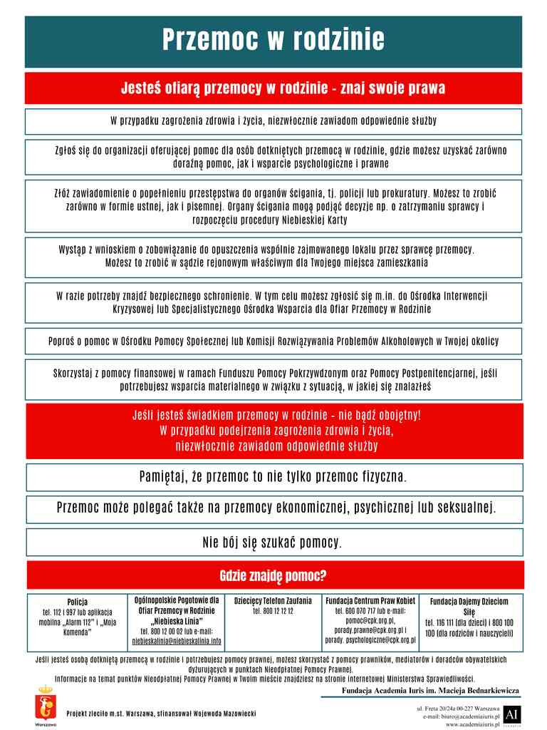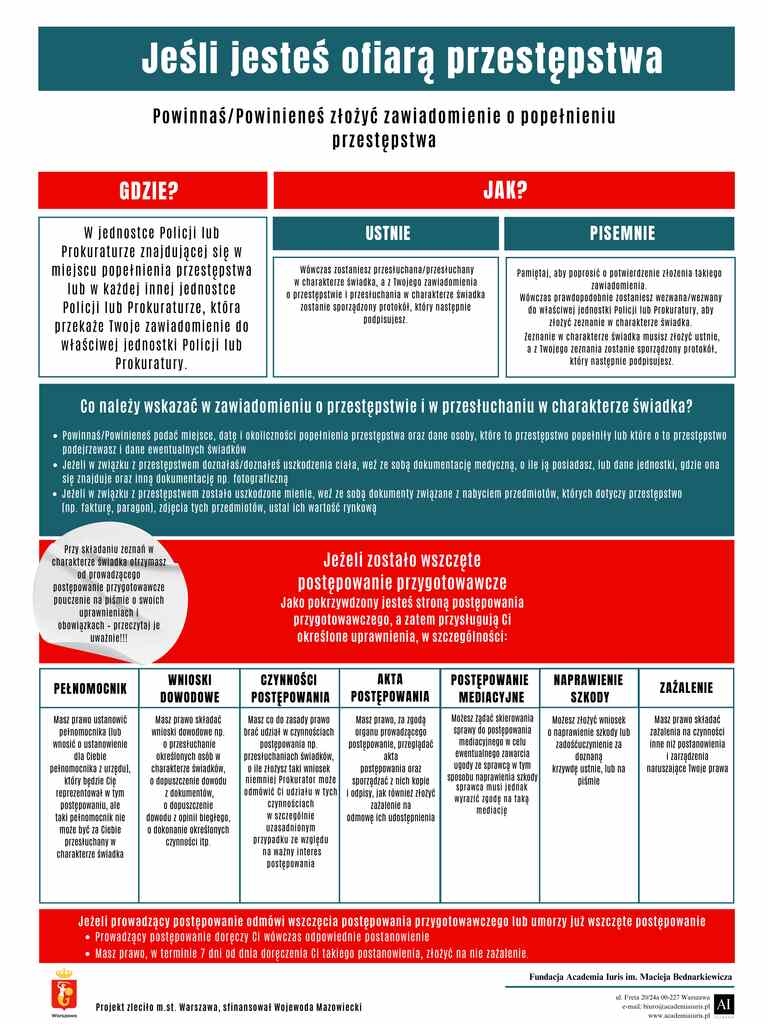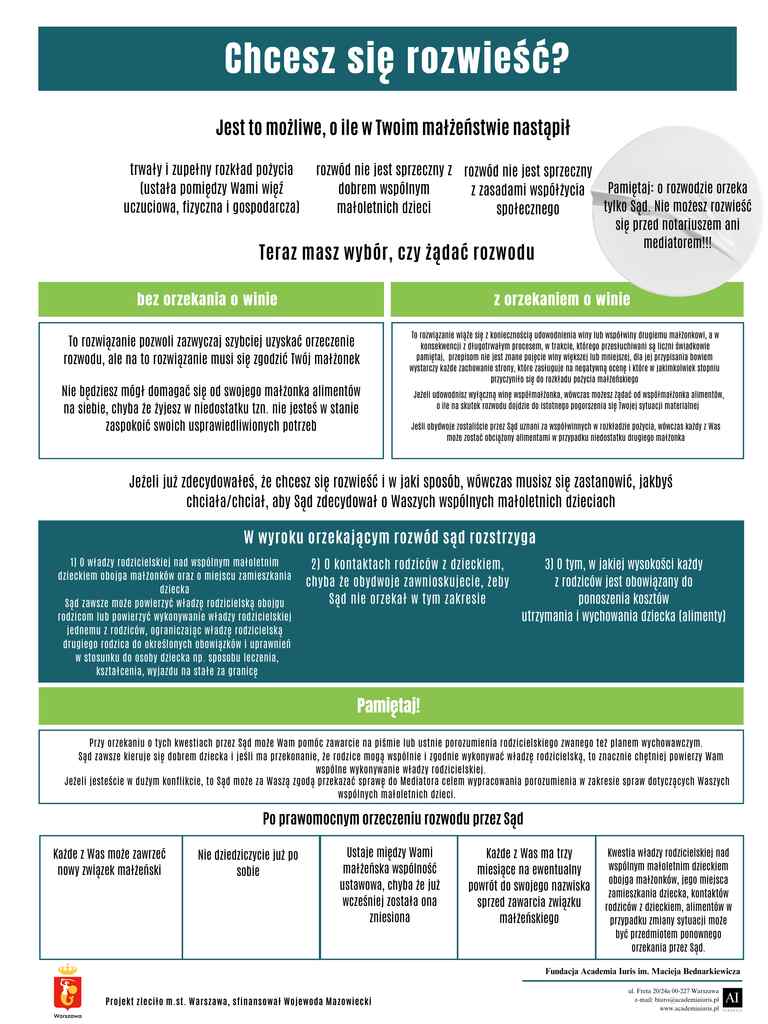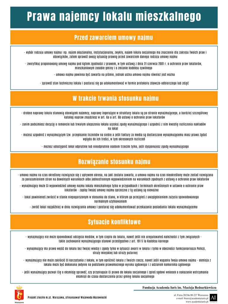 W ramach edukacji prawnej, przy współpracy z Urzędem Miasta st. Warszawy, Fundacja Academia Iuris przygotowała plakaty z infografikami na tematy prawne, z którymi najczęściej zgłaszają się mieszkańcy Warszawy.