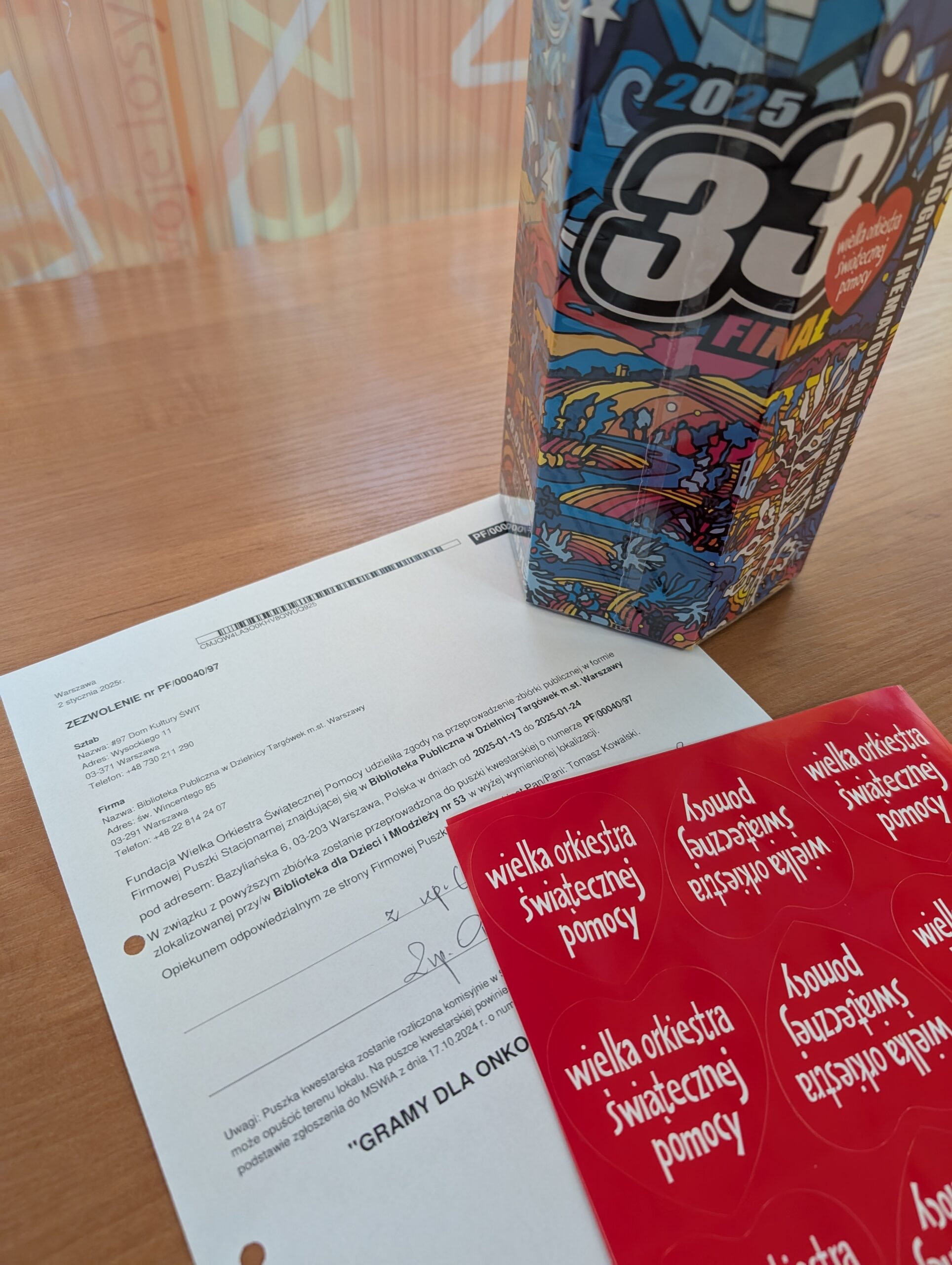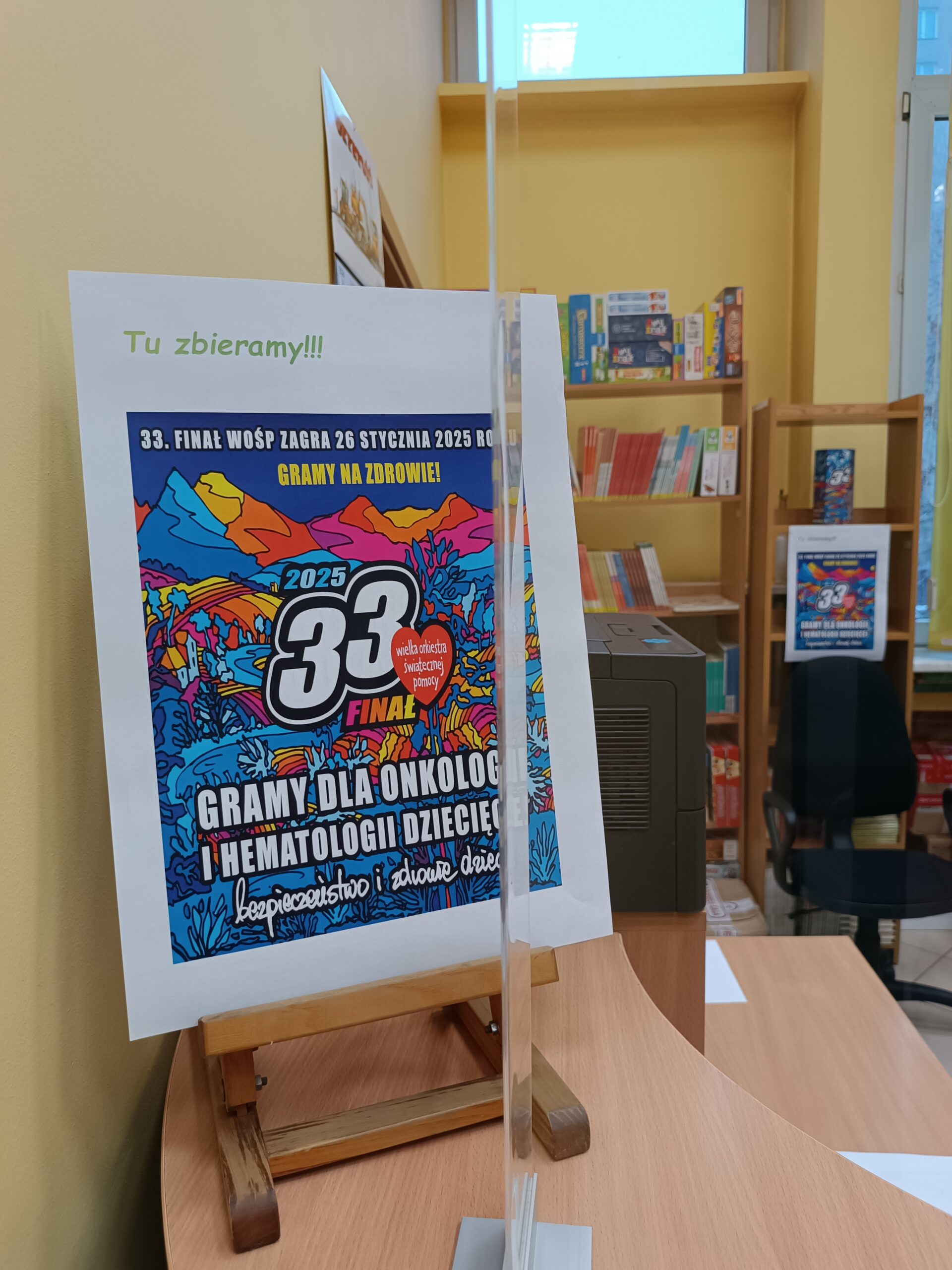 W naszych czterech placówkach pojawiły się puszki i serduszka, aby w dniach 13-24 stycznia 2025 r. każdy (np. przy okazji wypożyczania książek)  mógł dołożyć się do zbiórki na onkologię i hematologię dziecięcą.