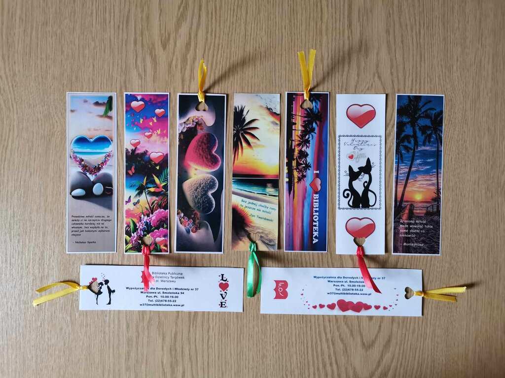Takie oto piękne zakładki walentynkowe będą rozdawane od 12 lutego 2024 r. (do wyczerpania zakładek) w Wypożyczalni nr 37 przy ul. Smoleńskiej 94.