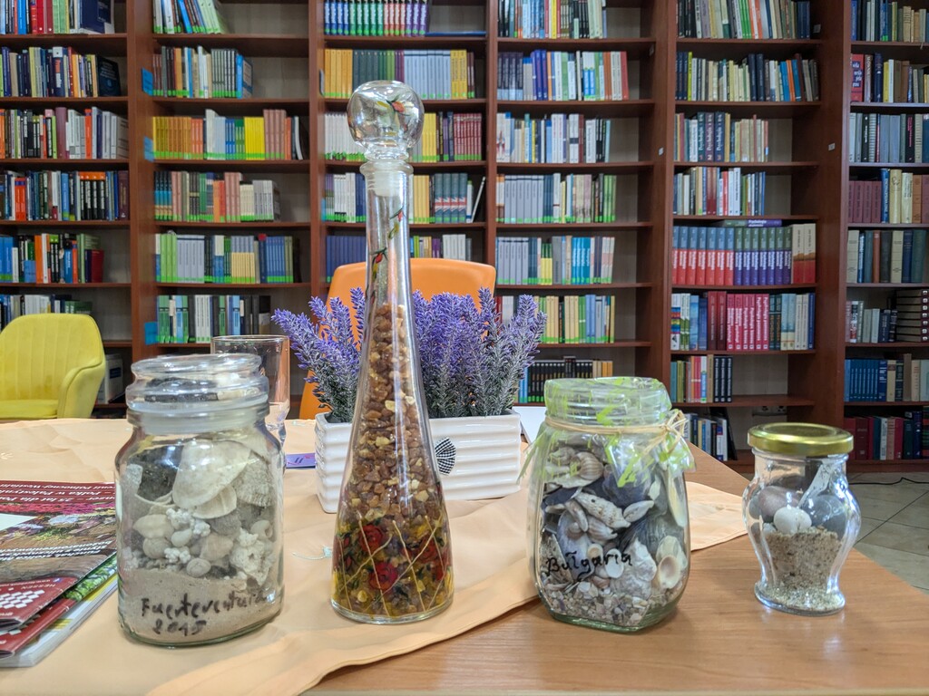 W części plastycznej Autorka pokazała swoje słoiczki, w których zamknięte są skarby z jej podróży – błękitne muszelki z bułgarskiej plaży, piach z Fuerteventury, a nawet szczypce kraba i bursztyny.