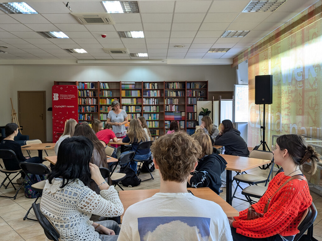 Warsztaty literacko-plastyczne odbyły się w ramach projektu „Mowa nie trawa – pielęgnujmy ogród języka ojczystego” realizowanego przez Bibliotekę Publiczną w Dzielnicy Targówek m.st. Warszawy w partnerstwie z Wydawnictwem Literackim Białe Pióro.