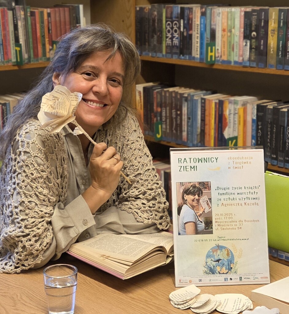 Wiosną i jesienią w placówkach Biblioteki Publicznej na Targówku odbyły się warsztaty ze sztuki użytkowej pt. „Drugie życie książki”, prowadzone przez Agnieszkę Kazałę – pisarkę i ilustratorkę. Zajęcia realizowane były w ramach projektu „Ratownicy Ziemi – ekoedukacja z Targówka w świat” i łączyły twórcze wykorzystanie materiałów z recyklingu poznawanie książek z rozmową o ekologii oraz promocją czytelnictwa.