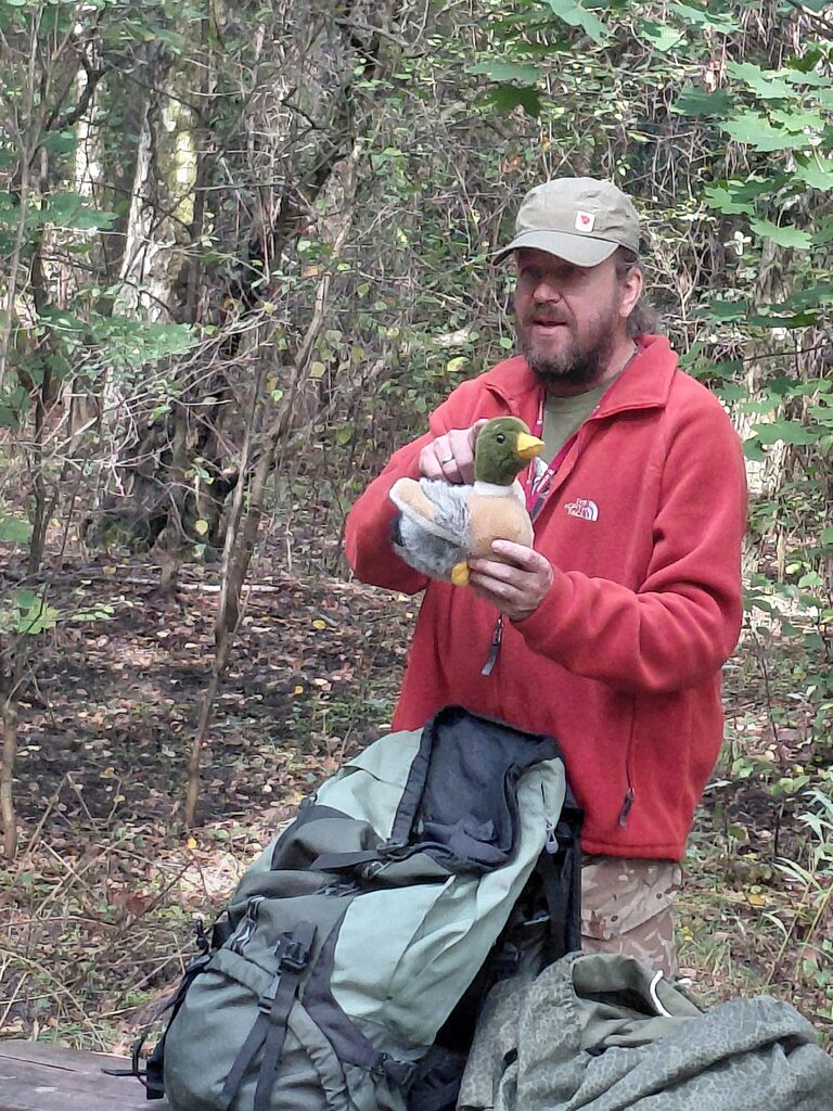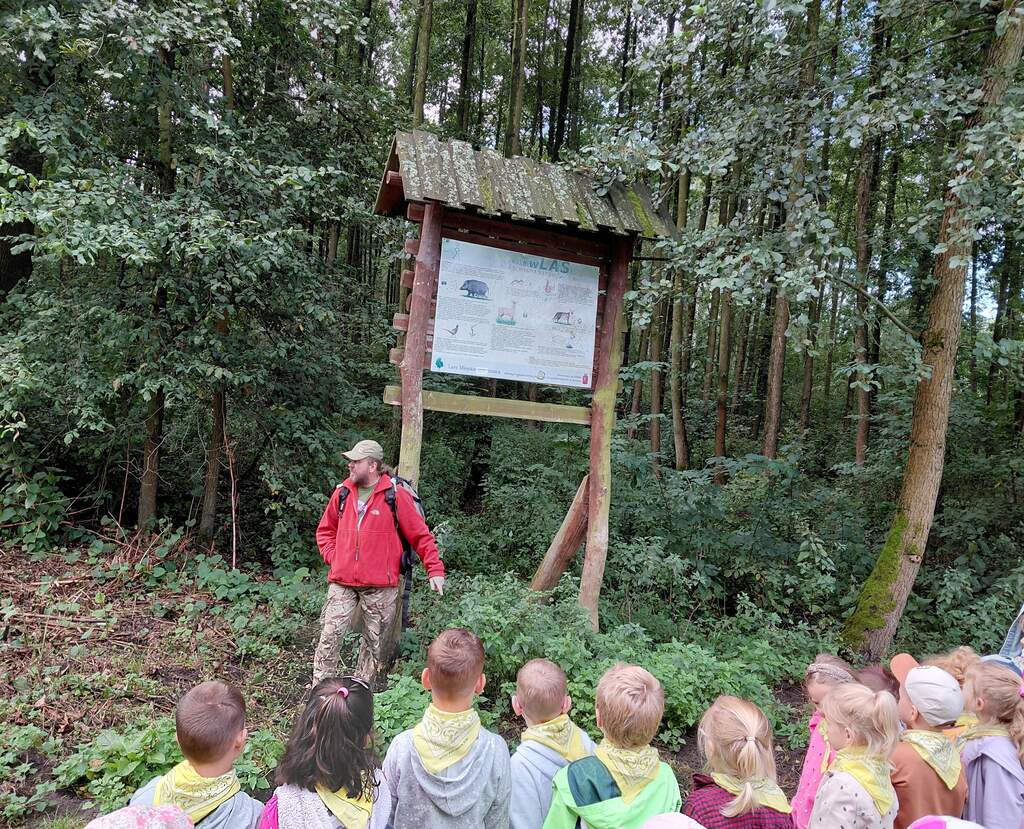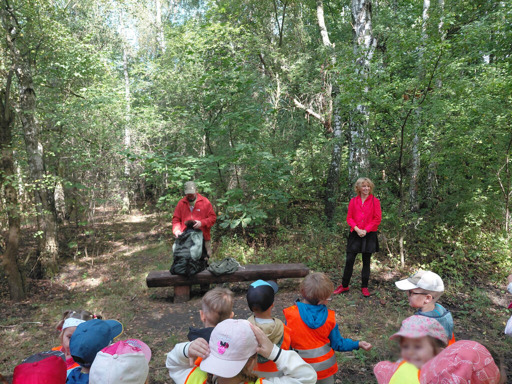O ptakach i budkach powieszonych dla nich na drzewach oraz o innych mieszkańcach lasu bardzo intersująco opowiadał pan Sławomir Kasjaniuk – przewodnik kampinoski, instruktor turystyki kwalifikowanej, członek i wolontariusz Warszawskiej Grupy Ogólnopolskiego Towarzystwa Ochrony Ptaków.