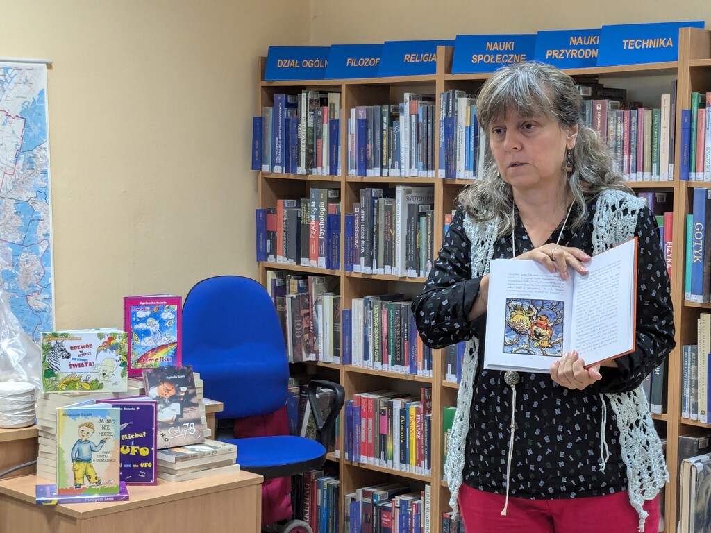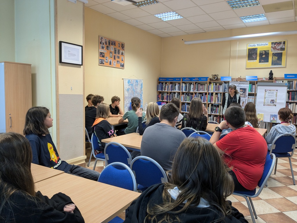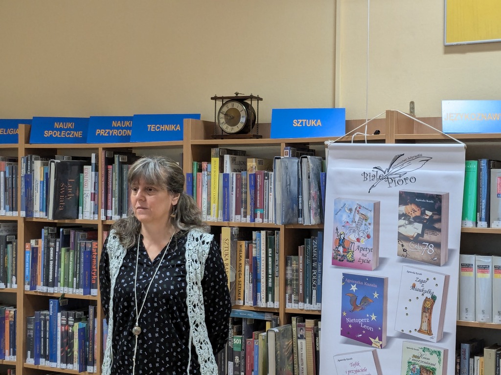 23 września 2024 r. młodzież z klasy siódmej Szkoły Podstawowej nr 42 wzięła udział w warsztatach literacko-plastycznych pt. „Nanizane – osnowa i wątek”, które odbyły się w Bibliotece dla Dzieci i Młodzieży nr 52 (ul. Rembielińska 6a). Prowadziła je związana z Targówkiem autorka książek i ilustratorka Agnieszka Kazała.