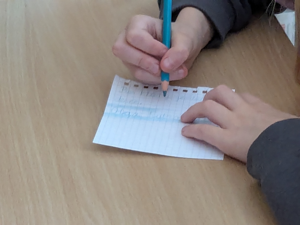 Następnie uczniowie mieli za zadanie zastanowić się, cóż może oznaczać zwrot stanowiący tytuł warsztatów, a potem wymyślić własne łamigłówki językowe i zapisać je na rozdanych kartkach albo wymyślić ciekawy tytuł książki, która jeszcze nie istnieje. W ten sposób powstało kilka ciekawych kombinacji i propozycji – niektóre całkiem „wyplecione trzy po trzy”, o co właśnie chodziło Prowadzącej.