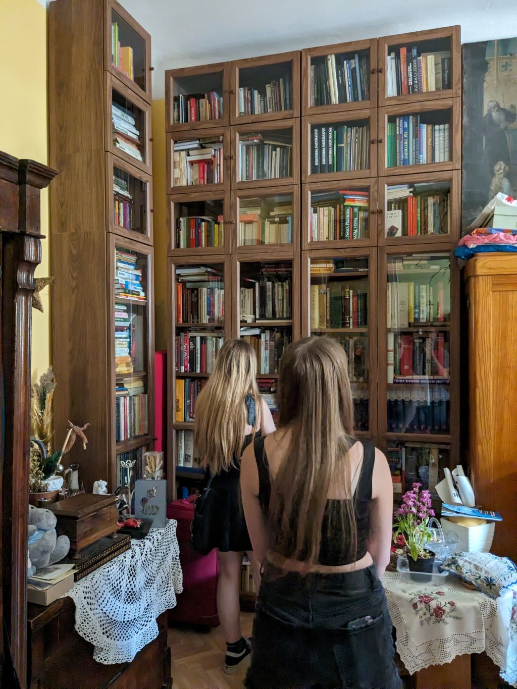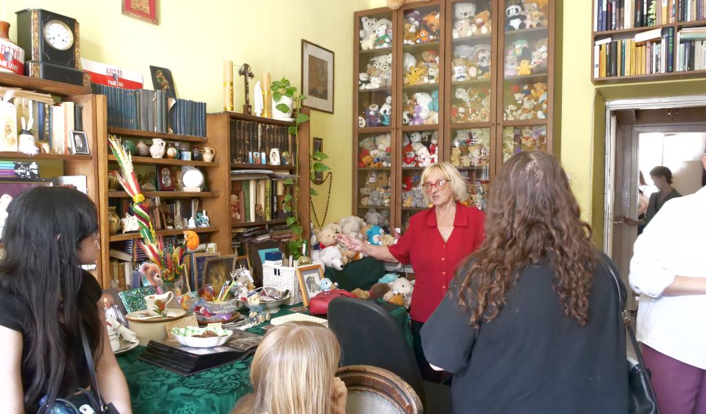 Najważniejszym punktem warsztatów była wizyta w mieszkaniu Janiny Englert, patronki Czytelni Naukowej nr I. To wyjątkowe miejsce, pełne pamiątek i wspomnień, stało się tłem do opowieści o życiu i działalności tej wybitnej bibliotekarki. O Janine Englert porywająco opowiadała Hanna Budzisz. Z zaangażowaniem przybliżyła uczestnikom nie tylko wiele informacji o Janinie Englert, lecz również o jej rodzinie i współpracownikach. Nie zabrakło także anegdot.