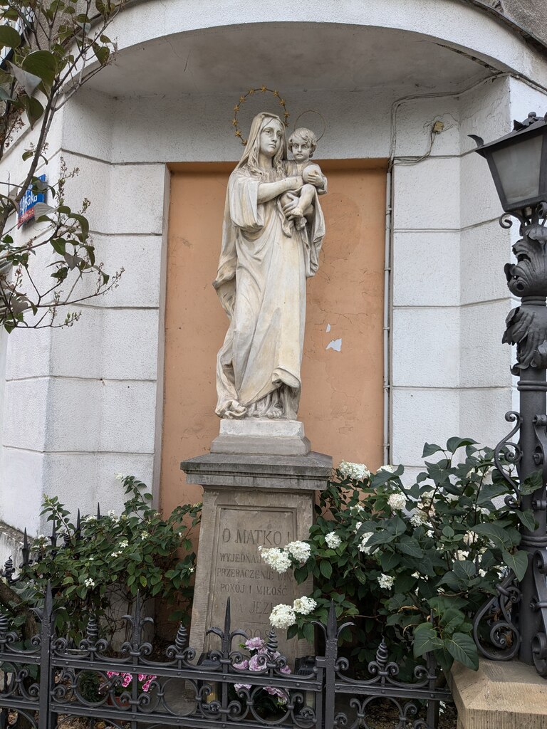 - figura Matki Bożej z Dzieciątkiem z 1908 roku, tzw. Madonna Praska, stojąca na Szmulowiźnie na rozdrożu ulic: Ząbkowskiej, Korsaka, Kawęczyńskiej i Radzymińskiej. Rzeźba dłuta Feliksa Giecewicza otoczona jest metalowym ogrodzeniem ze stojącymi po obu jej stronach stylowymi latarniami misternie ręcznie robionymi. Według niektórych relacji figura stoi na miejscu pochówku ofiar rzezi Pragi z 1794 roku.,