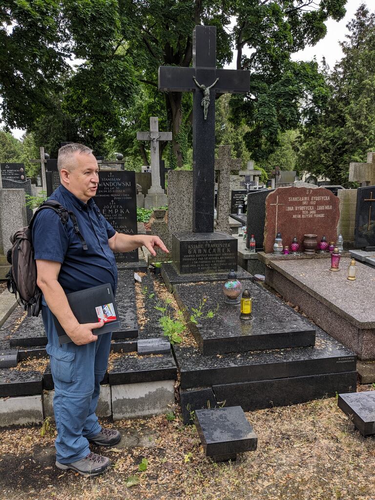 Kolejnym etapem był cmentarz Bródnowski. Uczniowie XLVI LO poznali m.in. historię grobu kapłańskiego ze szczątkami biskupów nubijskich sprzed tysiąca lat, a także osób zasłużonych dla Polski w czasie II wojny światowej.