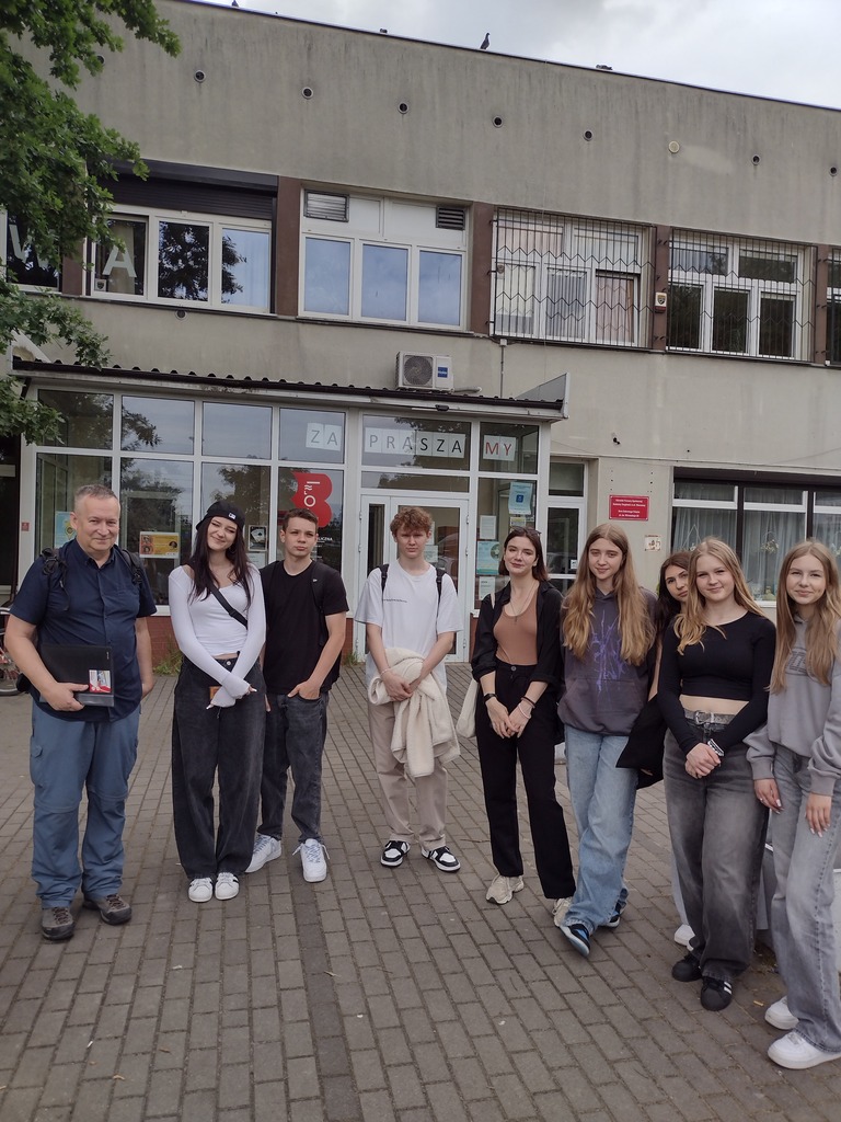 Choć pogoda nie zapowiadała się najlepiej, uczniowie z klasy 1cf nie poddali się i wzięli udział w plenerowych warsztatach varsavianistycznych prowadzonych przez pana Krzysztofa Gajdę w ramach projektu pt. „Śladami Englertówki. Jak narodziła się pierwsza czytelnia naukowa w Warszawie?”.