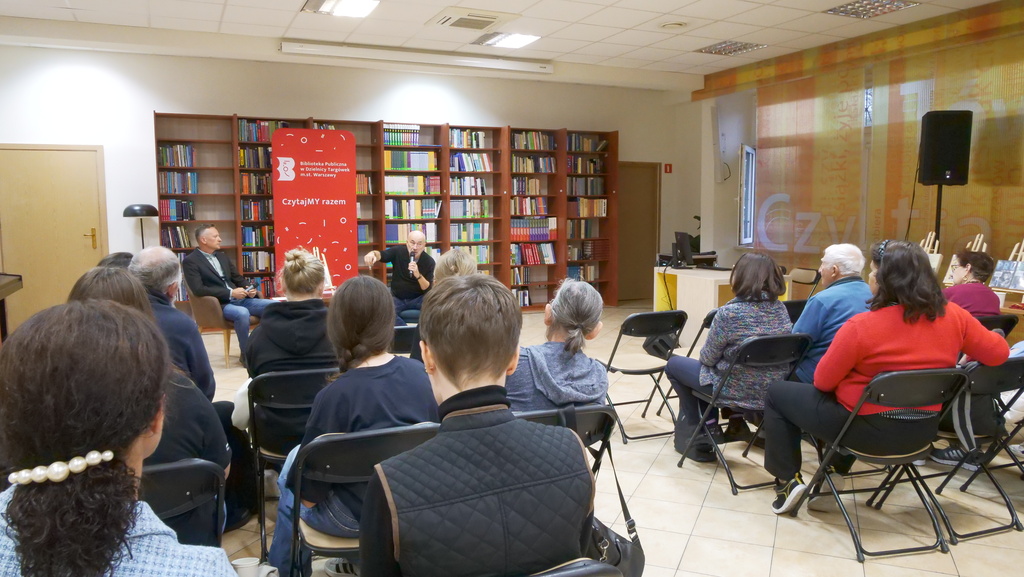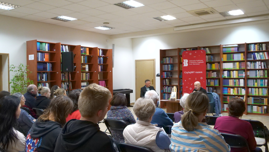 Rozmowa z Autorem m.in. książek „Miłość w Powstaniu Warszawskim”, „Śladami pierwszych Piastów”, „Wędrówki po Polsce piastowskiej”, „Życie prywatne elit II Rzeczypospolitej” dotyczyła głównie Powstania Warszawskiego. Spotkanie zorganizowaliśmy bowiem w ramach projektu „PamiętaMY o Powstaniu”, realizowanego w partnerstwie z XLVI Liceum Ogólnokształcącym z Oddziałami Dwujęzycznymi im. Stefana Czarnieckiego. Pani Małgorzata Muter (Wicedyrektorka XLVI LO im. Stefana Czarnieckiego) i uczniowie byli obecni na spotkaniu.