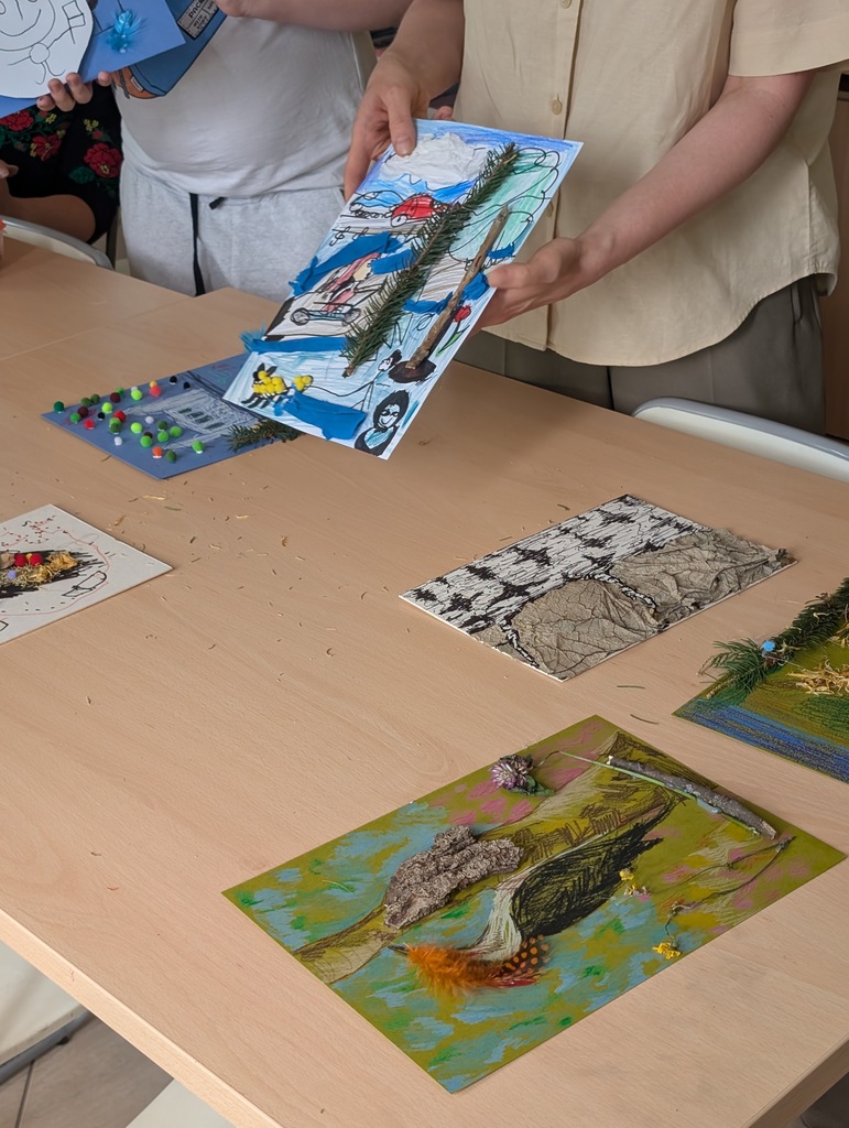 Każdy obraz był niepowtarzalny i zachwycał bogactwem detali. Efekty zaskoczyły wszystkich – lasy tętniły życiem, a rzeki błyszczały feerią barw. Takie zajęcia to nie tylko świetna zabawa, ale i doskonała okazja do rozwijania wyobraźni oraz zmysłu dotyku.