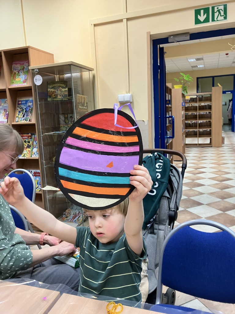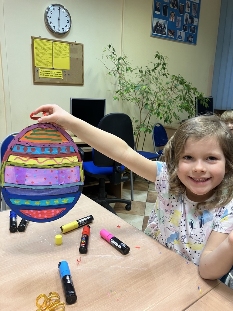 Praca plastyczna była natomiast związana ze zbilżającymi się Świętami. Dzieci wraz z rodzicami wykonały piękne witrażowe jaja wielkanocne. Efekty prac przedstawiamy na zdjęciach.