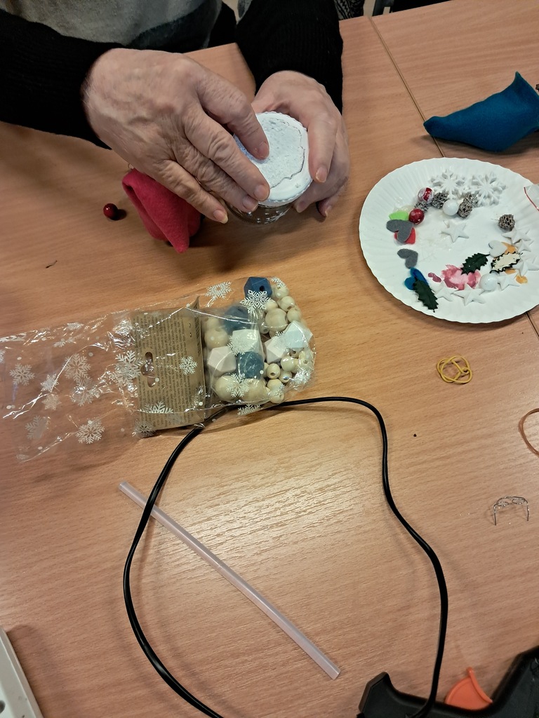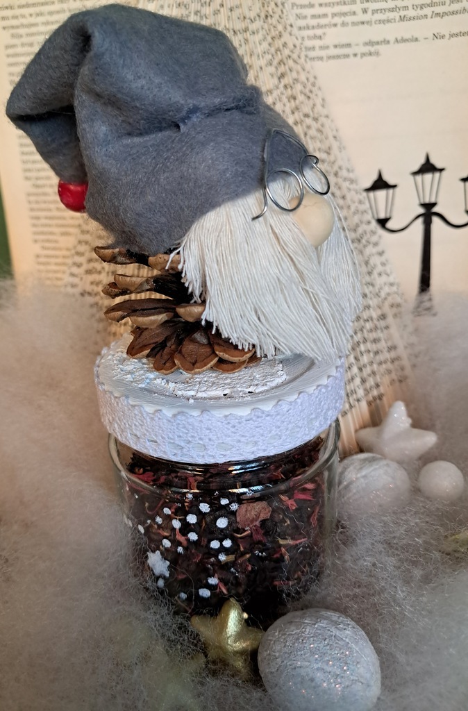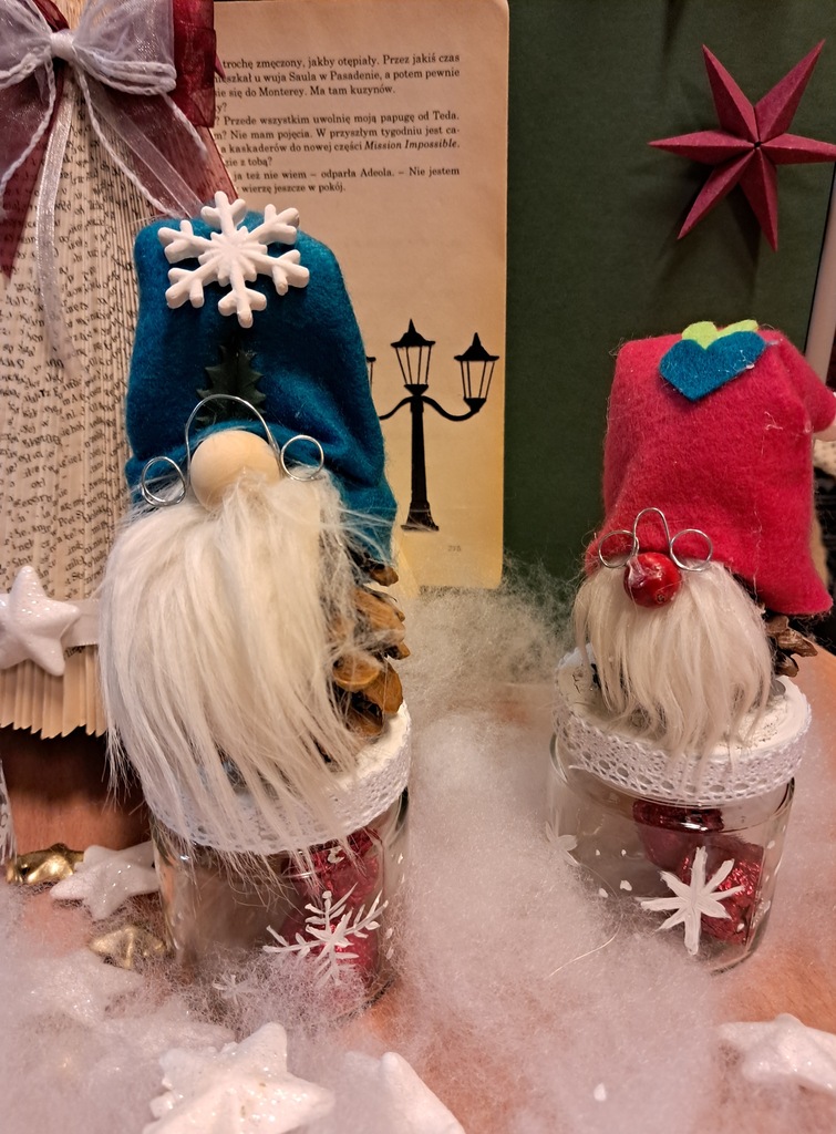 3 grudnia w Wypożyczalni nr 2 odbyło się kolejne spotkanie w ramach comiesięcznych spotkań „Herbaciana Środa”, które miało wyjątkowo świąteczny charakter. Już od progu uczestników witał zapach korzennej herbaty i dekoracje wprowadzające w atmosferę nadchodzących Świąt. Po wspólnej herbatce rozpoczęły się twórcze warsztaty, podczas których uczestnicy własnoręcznie ozdobili malutki słoiczek uroczym gnomem – symbolem zimowej magii i domowego ciepła, przypominającym o radości oczekiwania na Boże Narodzenie. Powstałe prace zachwycały różnorodnością i pomysłowością, a każdy słoiczek stał się drobnym, świątecznym akcentem, który świetnie sprawdzi się zarówno jako prezent dla bliskiej osoby, jak i niewielka ozdoba wnętrza.