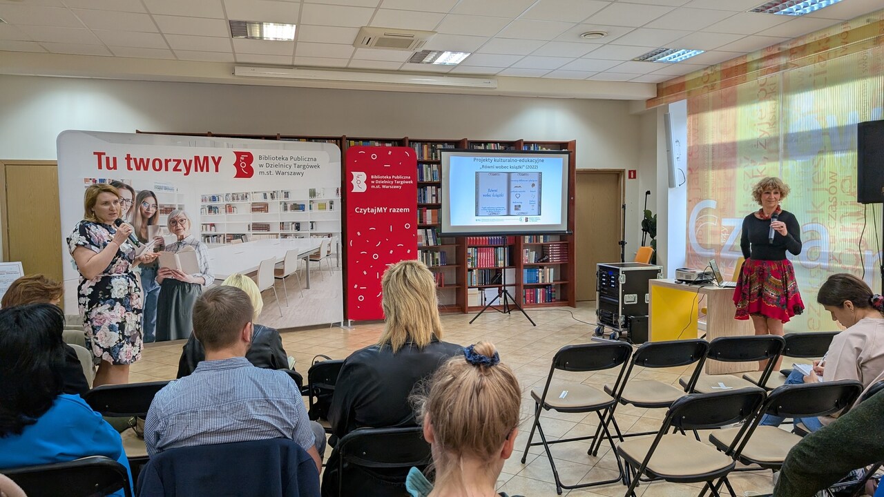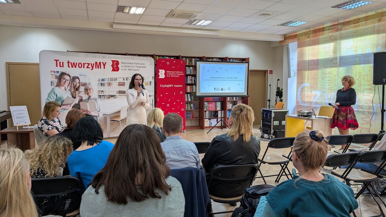 W Czytelni Naukowej nr I im. Janiny Englert 16 maja odbyło się spotkanie „Inkluzywna kultura – twórcze relacje” gromadzące realizatorki i realizatorów edukacji kulturalnej na Targówku. Wydarzenie poprowadziły Anika Strzelczak-Batkowska – Zastępczyni Dyrektora Biblioteki na Targówku oraz Katarzyna Przybysz-Mendyk – Koordynatorka Edukacji Kulturalnej w Dzielnicy Targówek, Starsza specjalistka ds. promocji w Bibliotece.