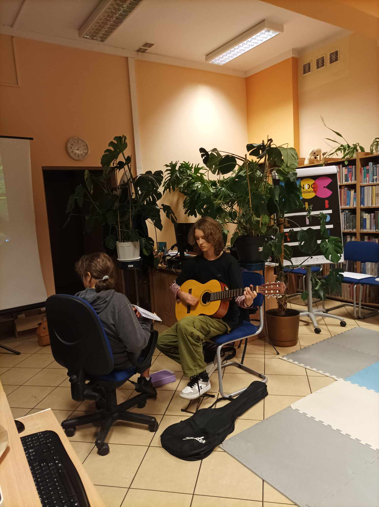 Na zakończenie spotkania, po małym poczęstunku i zjedzeniu „cynamonek mocy”, nasza wolontariuszka Agata zagrała bardzo ładnie we własnej aranżacji kilka utworów na gitarze (m.in. „Pod Papugami”, „Boogie”, „Mgła”).