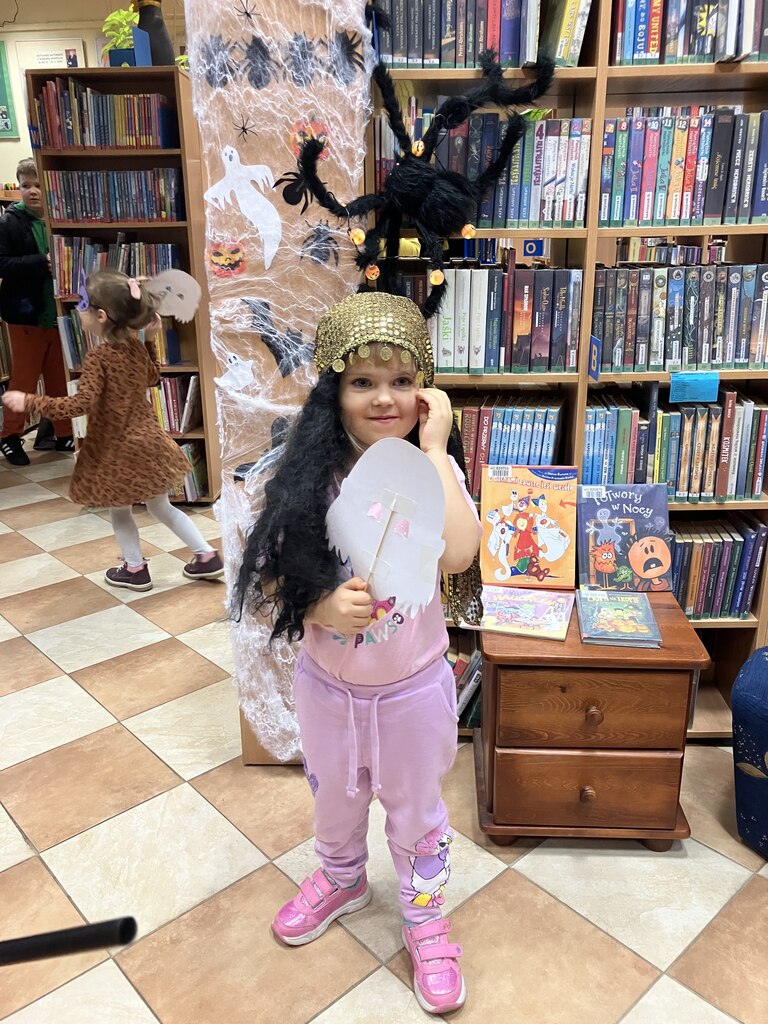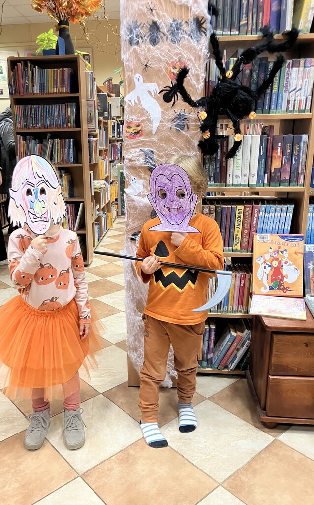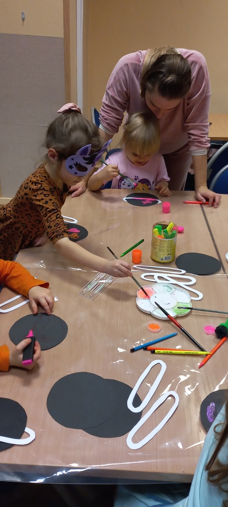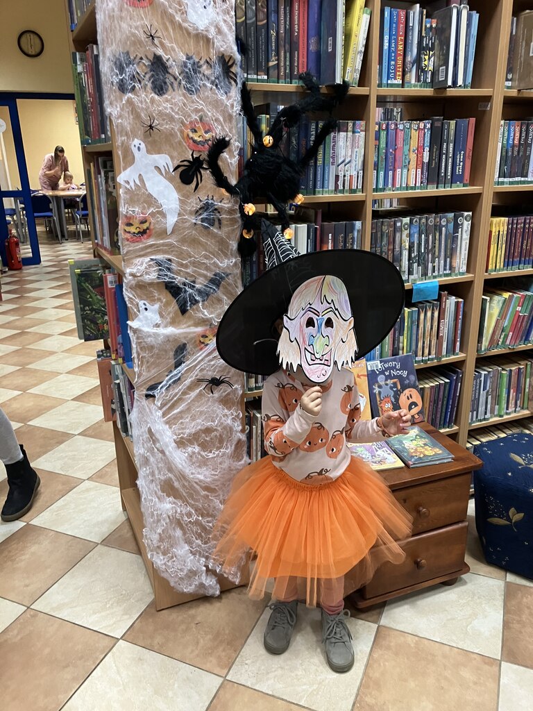 W związku z tym, iż nasze spotkanie z Jadwigą odbywało się 31 października, czyli w Halloween, nie mogło zabraknąć akcentu grozy. Dzieci pomalowały maski czarownic i Drakuli oraz mogły się przebrać i skorzystać z naszej halloweenowej „ścianki”. Efekty prezentujemy na zdjęciach.