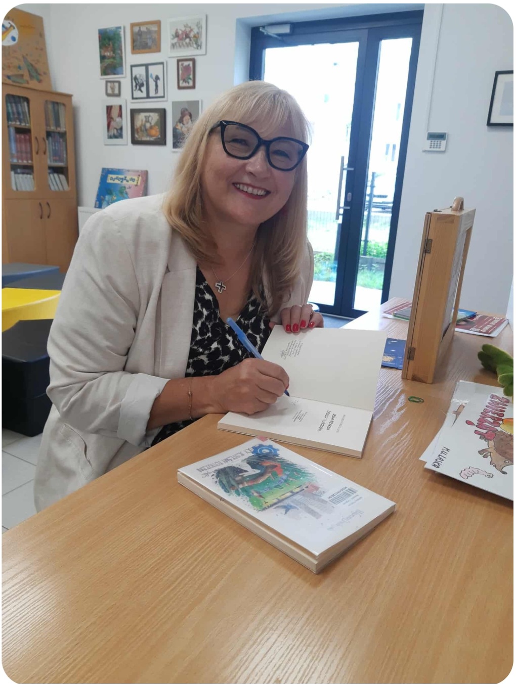 23 września 2025 roku w Bibliotece Publicznej dla Dzieci i Młodzieży nr 12 odbyło się spotkanie autorskie z panią Małgorzatą Laską – twórczynią książek dla najmłodszych. W wydarzeniu uczestniczyły dzieci ze Szkoły Podstawowej nr 84. Inspiracją dla spotkania była najnowsza pozycja pani Małgorzaty pt. ,,Językowe zakręty”. Autorka czytała fragmenty swoich utworów, inicjowała zabawy i interakcje z dziećmi, wprowadziła elementy teatrzyku kamishibai oraz rozwiązywała z uczestnikami samodzielnie opracowane łamigłówki językowe. Na zakończenie uczestnicy spotkania mogli zapoznać się z bogatym dorobkiem autorki oraz kupić kilka jej książek. Wydarzenie swoją obecnością uświetniła również druga autorka literatury dziecięcej, wydawca – pani Agnieszka Kazała.