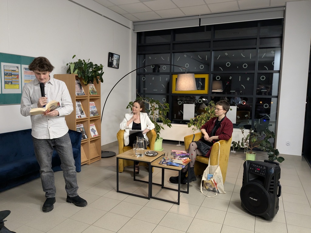 W trakcie spotkania Alek Bauman – lektor audiobooka „Dzwonek na długą przerwę” – przeczytał fragment dzieła. Cóż za fenomenalny głos!!!