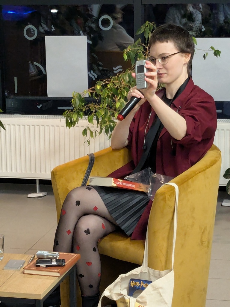 W promieniach ciepłych wspomnień prowadząca rozmowę dziennikarka Malwina Kossela już od pierwszych chwil stworzyła wspólnie z Autorką atmosferę pełną sentymentalnych refleksji. Dyskusja koncentrowała się wokół „Dzwonka na długą przerwę”, czyli najnowszej powieści autorki. Akcja książki osadzona jest w realiach szkolnych lat 2000. To stało się pretekstem do wspólnego powrotu do czasów bez wszechobecnego internetu, gdy po lekcjach czasami pisaliśmy ze sobą na Gadu-Gadu, szukaliśmy znajomych na Naszej Klasie, do dzwonienia i SMS-owania używaliśmy niezniszczalnej nokii, a do słuchania muzyki – odtwarzacza MP3.