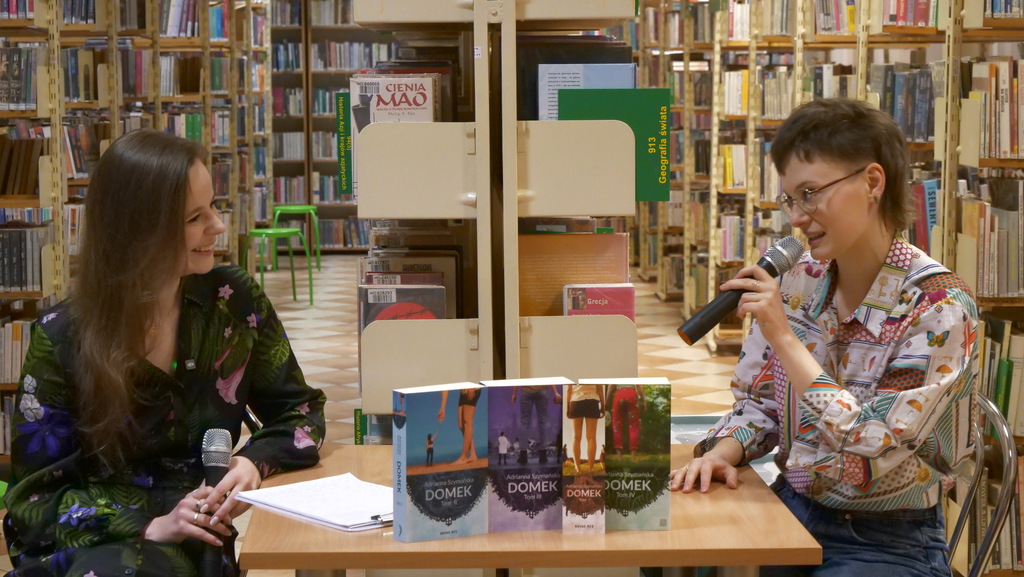5 marca gościem Wypożyczalni dla Dorosłych i Młodzieży nr 29 (ul. Rembielińska 6a) była Adrianna Szymańska-Zacheja – strona autorska, autorka 4-tomowego „Domku” (fantastyka obyczajowa). Podczas rozmowy z Malwiną Kosselą (moderatorką spotkania) opowiadała niesamowitą historię powstania tej serii. Dowiedzieliśmy się również, w jakich okolicznościach tworzy. Zainspirowała uczestników wydarzenia, dzieląc się z nimi swoimi technikami pisania oraz sposobami realizowania pomysłów na fabułę i bohaterów.