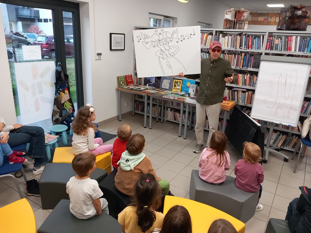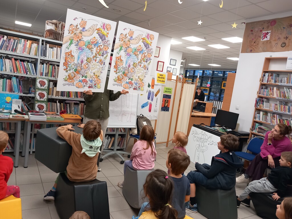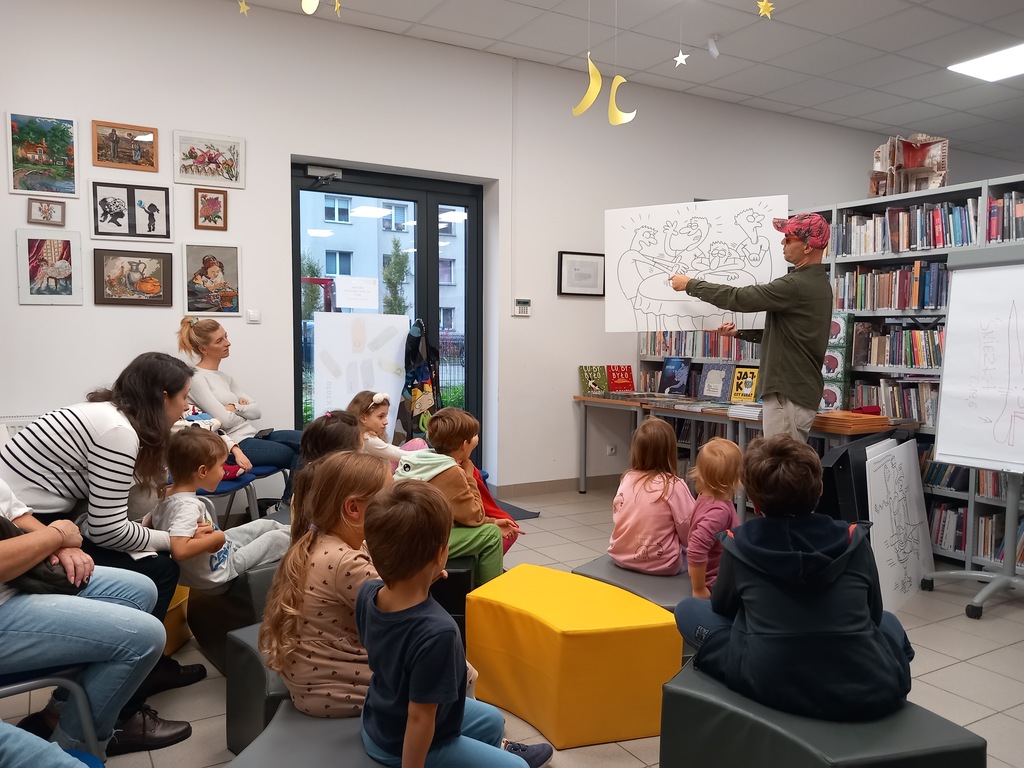 Już po raz jedenasty Biblioteka dla Dzieci i Młodzieży nr 12 wzięła udział w ogólnopolskiej akcji Noc Bibliotek. Tegoroczną edycję pod hasłem „Do dzieła!” otworzył w naszej placówce Przemysław Wechterowicz. Ponad 30 osób wzięło udział w spotkaniu autorskim, podczas którego można było wysłuchać fragmentów najnowszych książek pisarza (m.in. „Błystek”, „Co zrobimy z tym ogonem”, „Jak ci pomóc, robociku”), poznać tajniki jego codziennej pracy i historię. Na koniec każdy mógł kupić książkę naszego Gościa opatrzoną autografem i zrobić sobie wspólne, pamiątkowe zdjęcie.