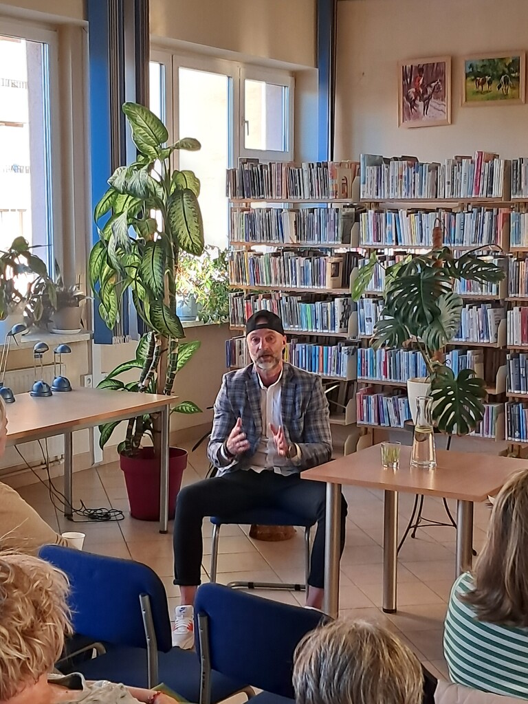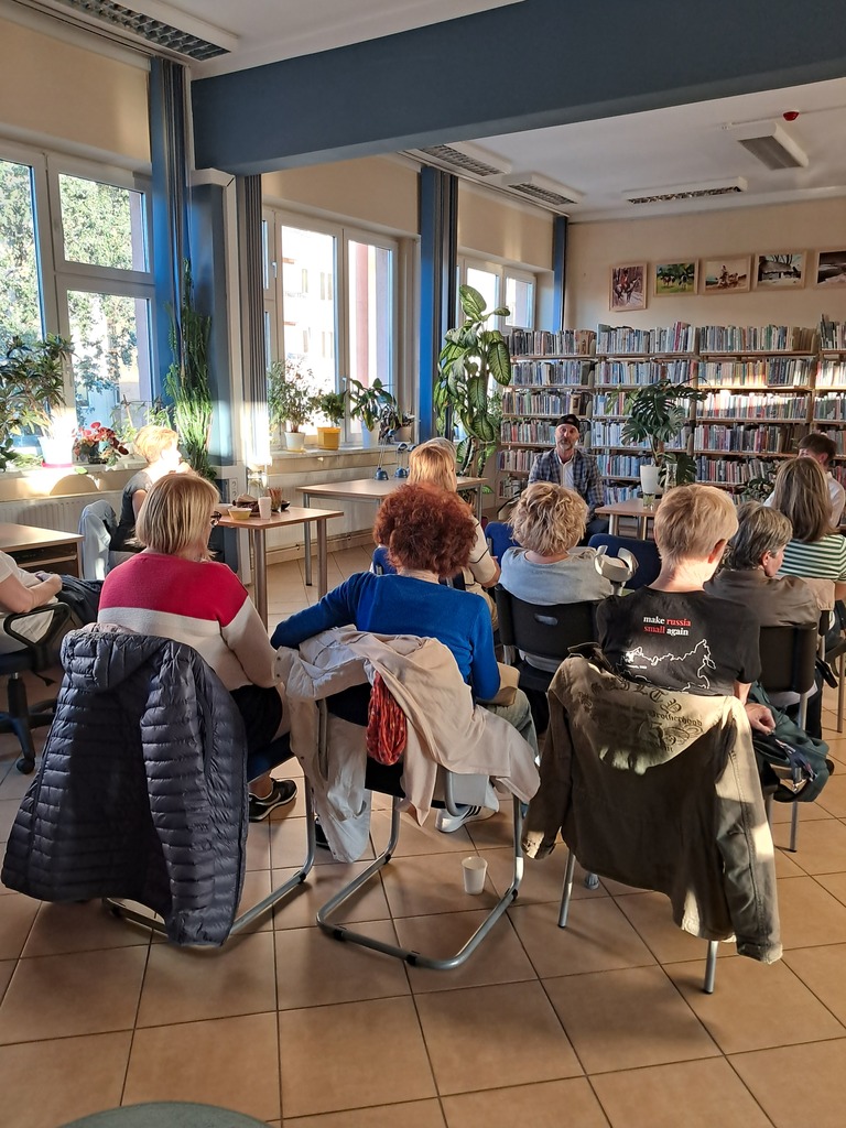 Uczestnicy spotkania mieli okazję zadawać pytania, dzielić się refleksjami i porozmawiać z autorem w kameralnej atmosferze.