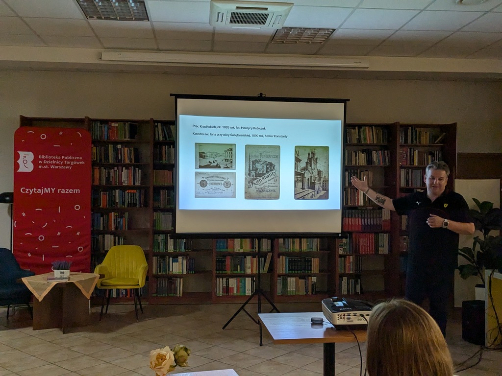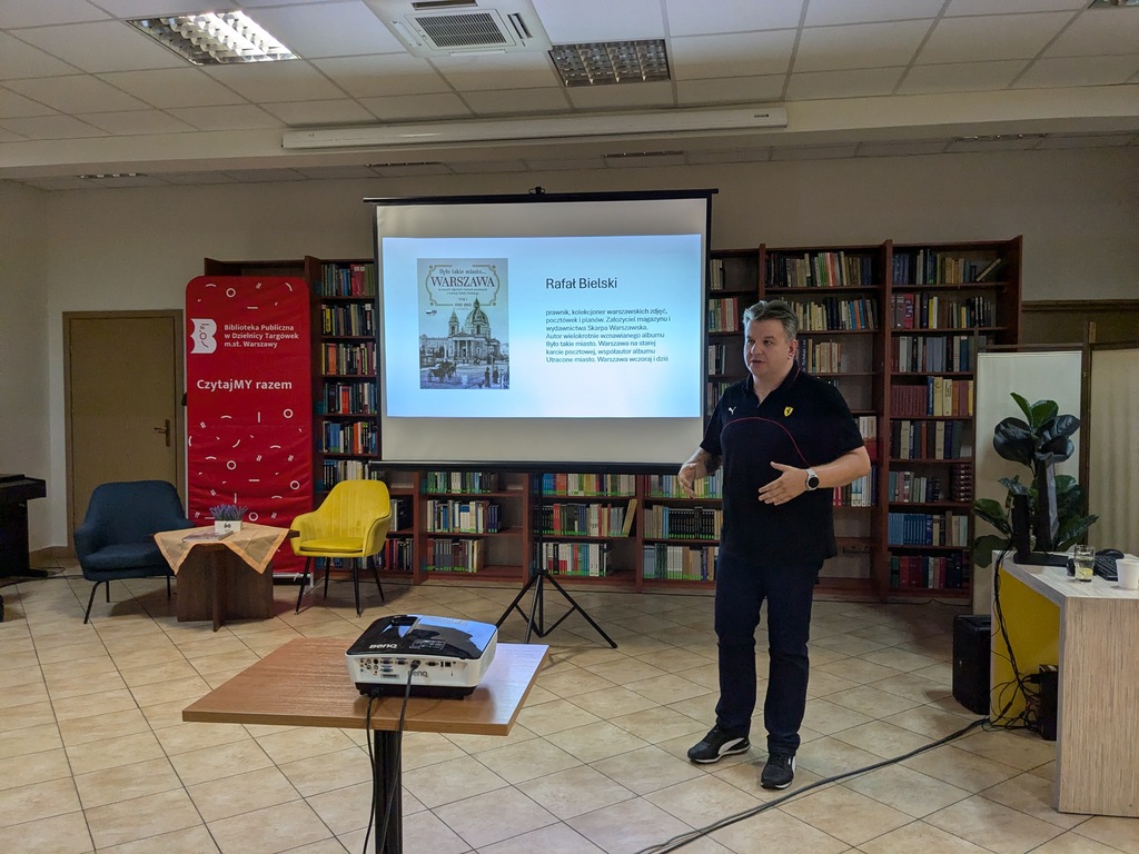 12 września 2024 r. w Czytelni Naukowej nr I im. Janiny Englert słuchaliśmy fascynujących opowieści autora książki „Było takie miasto… Warszawa na starych zdjęciach i kartach pocztowych z kolekcji Rafała Bielskiego” (książka dostępna w naszych bibliotekach – gorąco polecamy!). Zaprezentował nam również część swoich zbiorów. To właściciel jednej z największych kolekcji warszawskich zdjęć, pocztówek i planów: od pierwszych fotografii Warszawy autorstwa Karola Beyera, Maksymiliana Fajansa, Konrada Brandla czy Jana Mieczkowskiego, poprzez pierwsze warszawskie litograficzne karty pocztowe wydawane w Paryżu, Warszawie czy Sztokholmie, do pierwszych foto-pocztówek i reformy z 1904 roku.