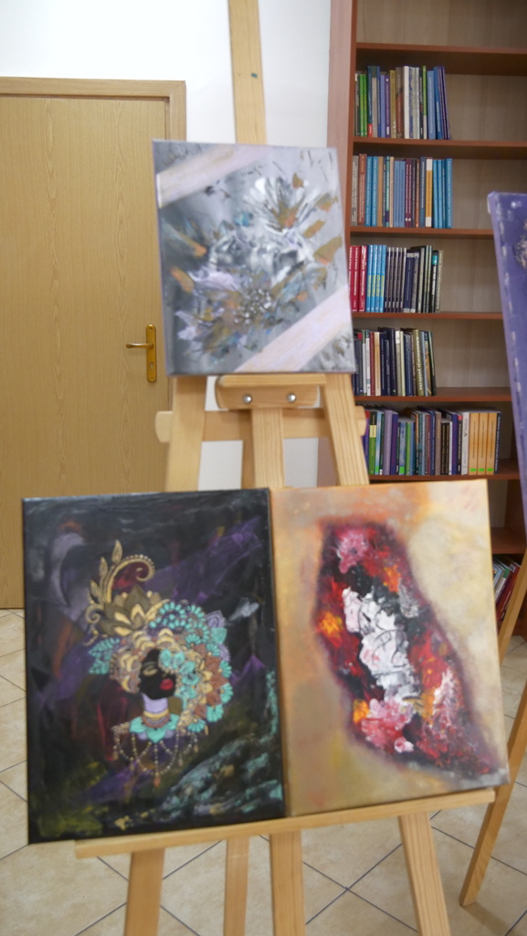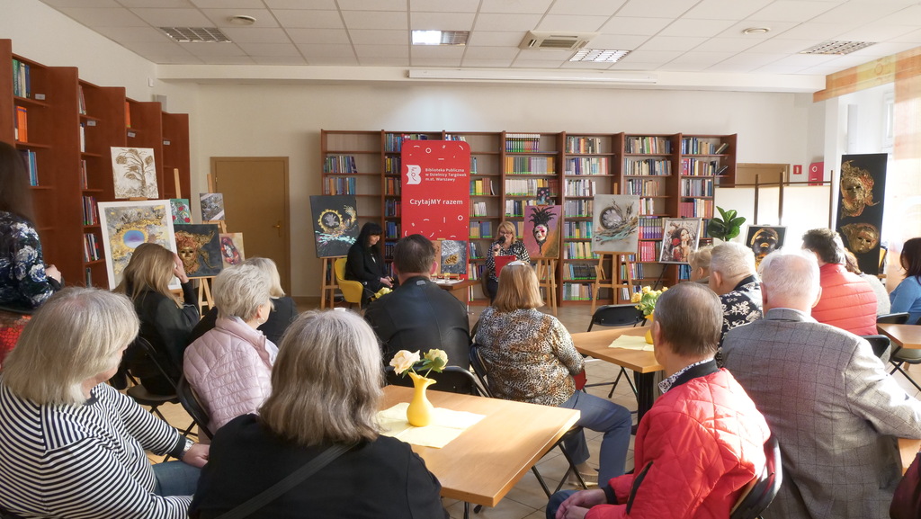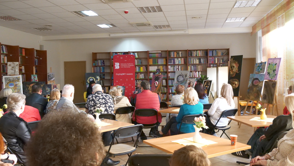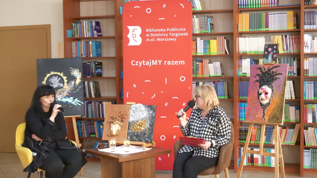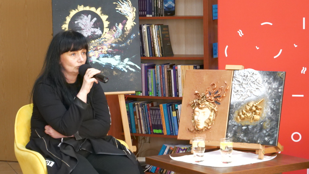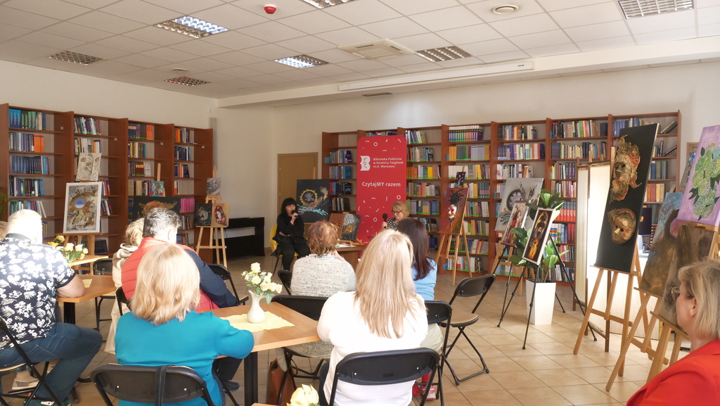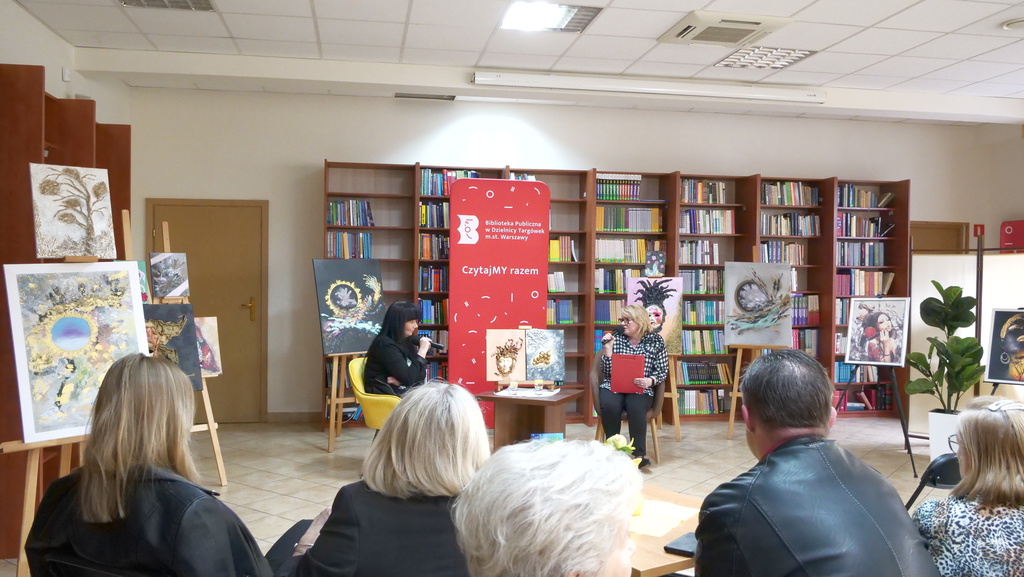 Podczas wernisażu Artystka opowiadała m.in. o okolicznościach towarzyszących tworzeniu, a także o tym, co Ją inspiruje. Rozmowę poprowadziła Aneta Nowakowska – kierownik Czytelni Naukowej nr I im. Janiny Englert.