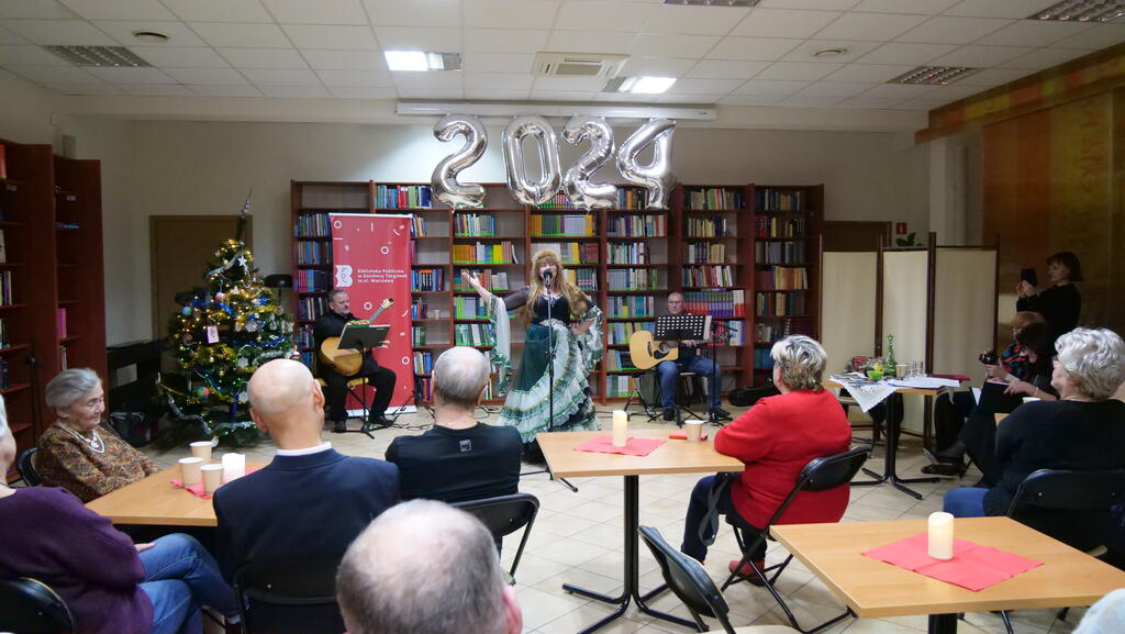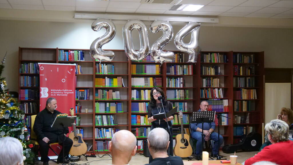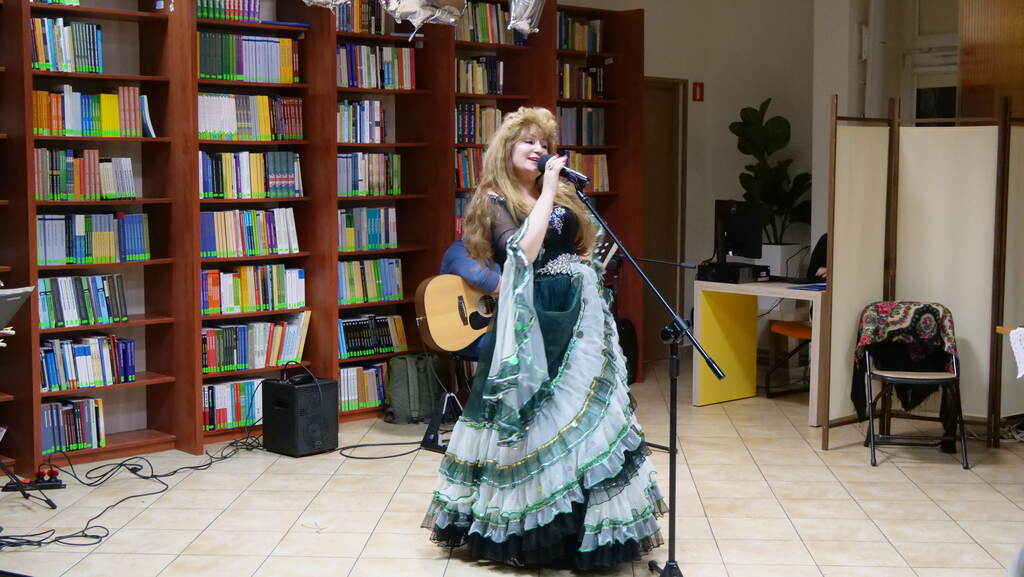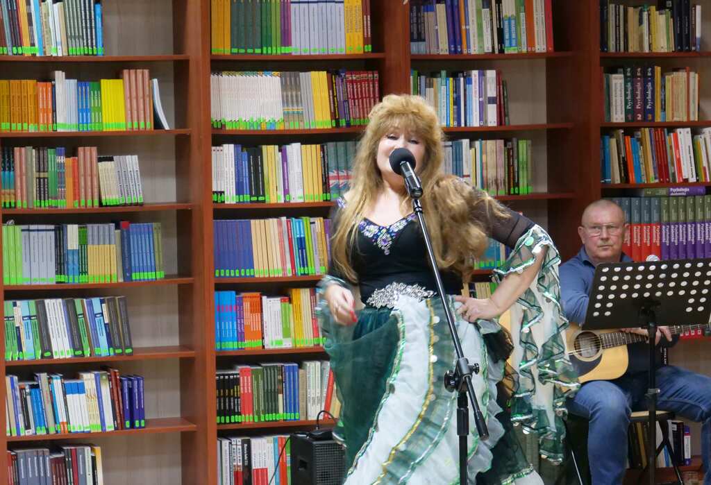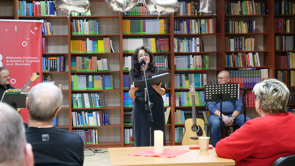 Wiersze Pani Danuty prezentowała także Jolanta Bogusławska. Marek Korzemski śpiewał i grał na gitarze. Podczas wieczoru podziwialiśmy nie tylko piękną poezję i muzykę, lecz także… tańce cygańskie! Na parkiecie Czytelni śpiewająco wirowała Danuta Nadia Malicka.