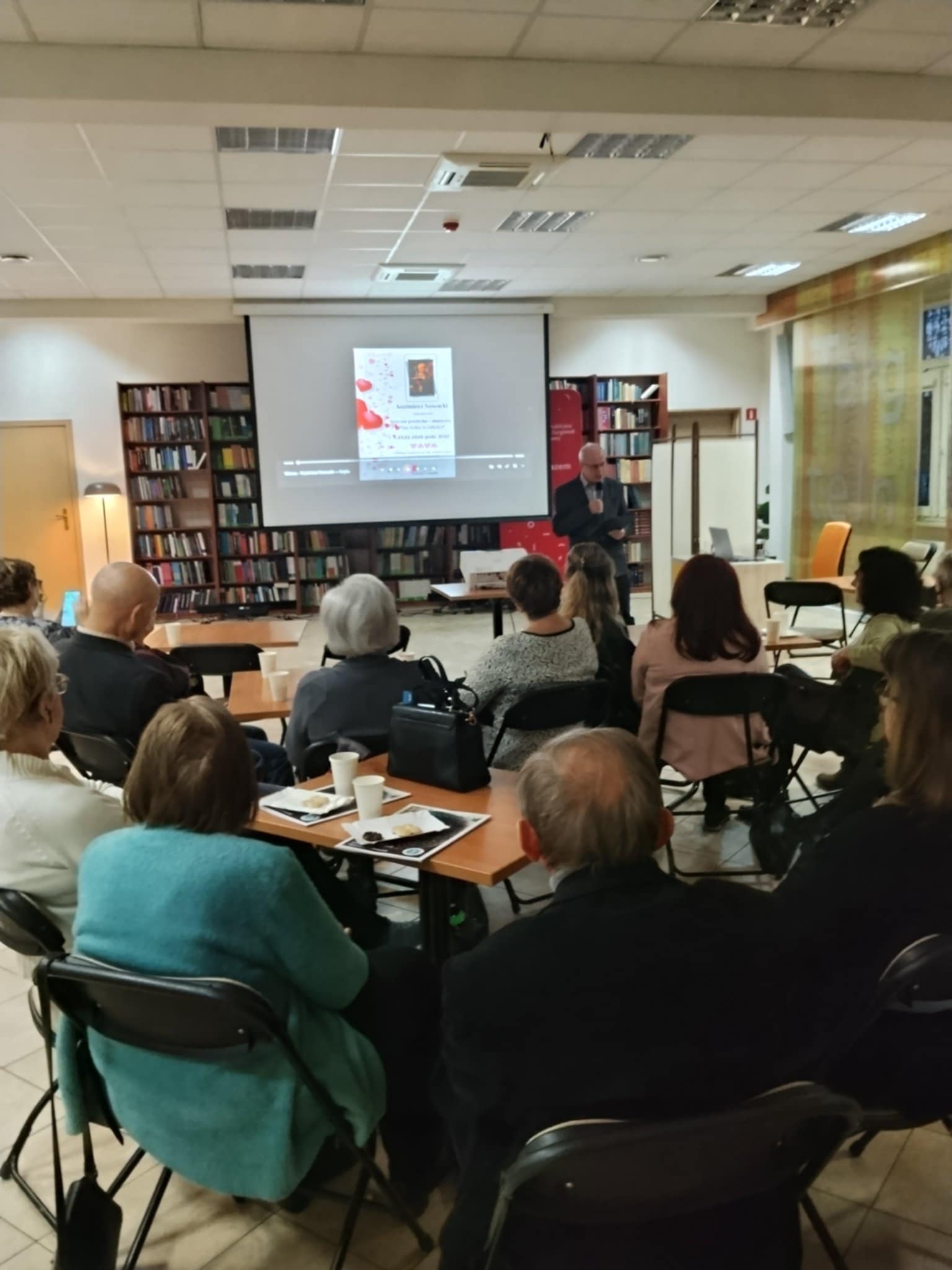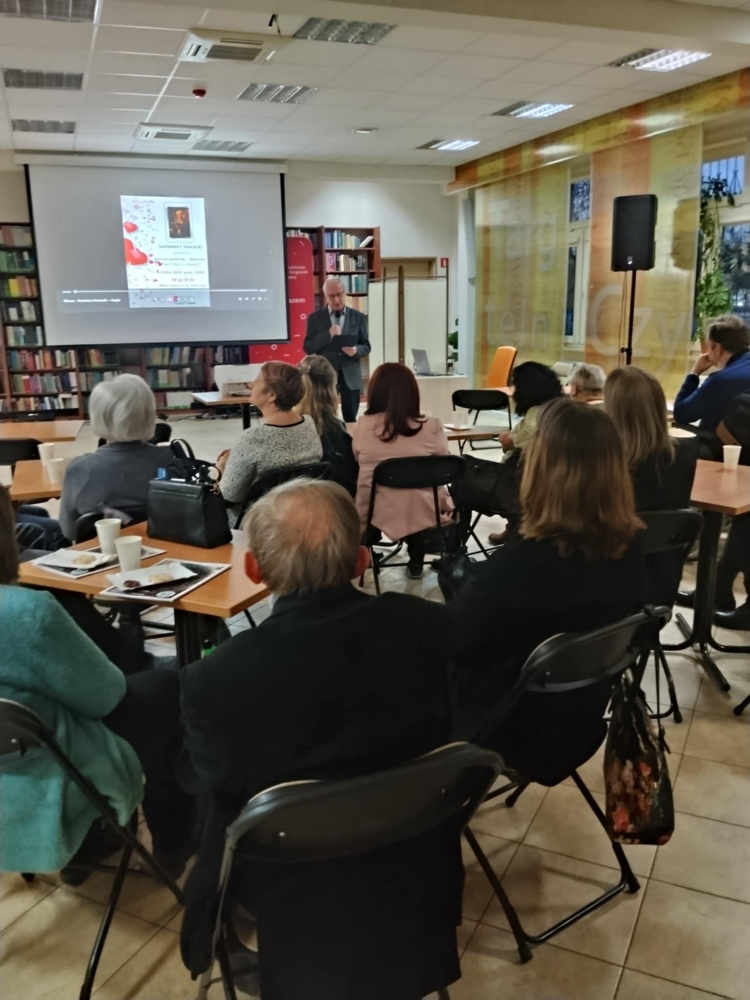 „Nie tylko o miłości” – ten wieczór poetycko-muzyczny Kazimierza Nowackiego emanował nie tylko pięknem wierszy i piosenek, ale również… emocjonował dzięki połączeniu prawdziwego artyzmu ze sztuczną inteligencją! Utwory poety wybrzmiały w Czytelni Naukowej nr I im. Janiny Englert w wyjątkowej aranżacji, śpiewane przez cyfrowych wokalistów AI. Licznie zgromadzona publiczność z zachwytem słuchała połączenia liryki z technologią. Gratulujemy innowacyjnego podejścia do sztuki!