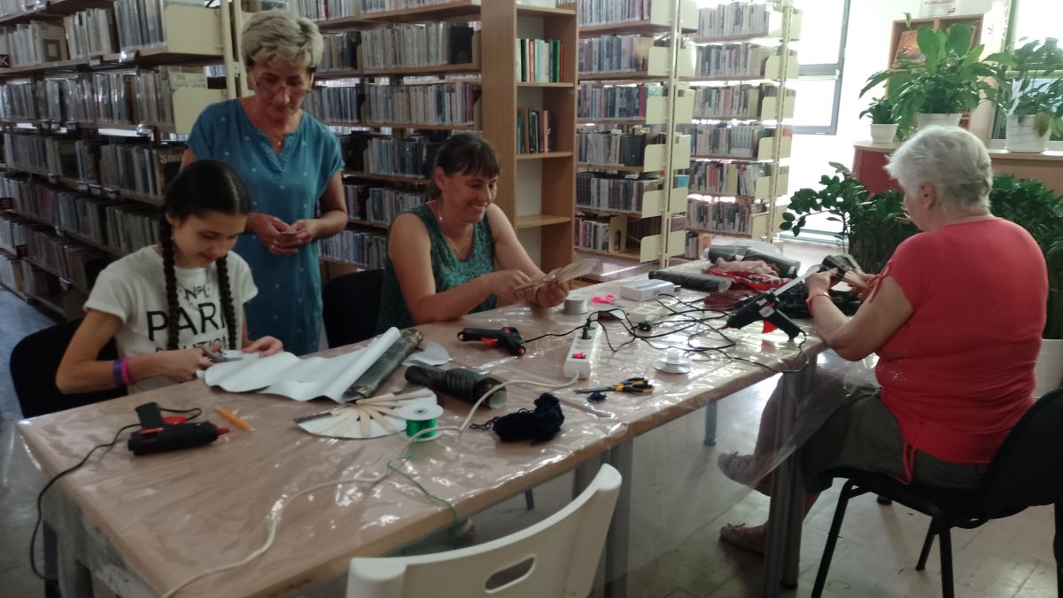 Przed nami lato – okres wakacji, czas pełen słońca. W Wypożyczalni dla Dorosłych i Młodzieży nr 60 na gorące, upalne dni przygotowaliśmy z uczestnikami warsztatów wachlarze. Wykonaliśmy dwa rodzaje: prosty składany wachlarz z kolorowego papieru oraz bardziej elegancki – z drewnianych patyczków, zdobiony koronkowym materiałem lub kolorową tapetą. Lekki, rozkładany wachlarz to doskonała ozdoba oraz gadżet do chłodzenia w upały. Pomysł warsztatów bardzo podobał się naszym uczestniczkom.