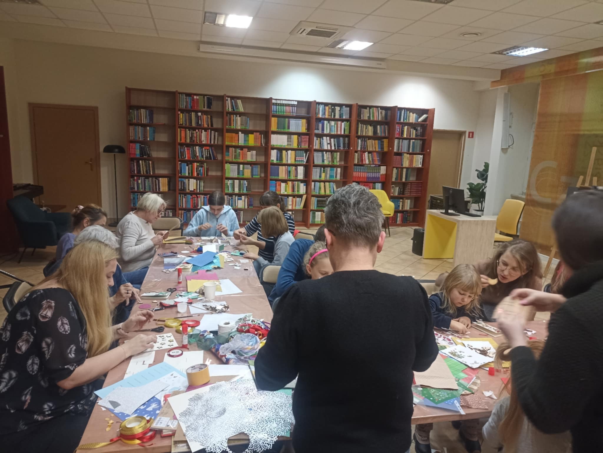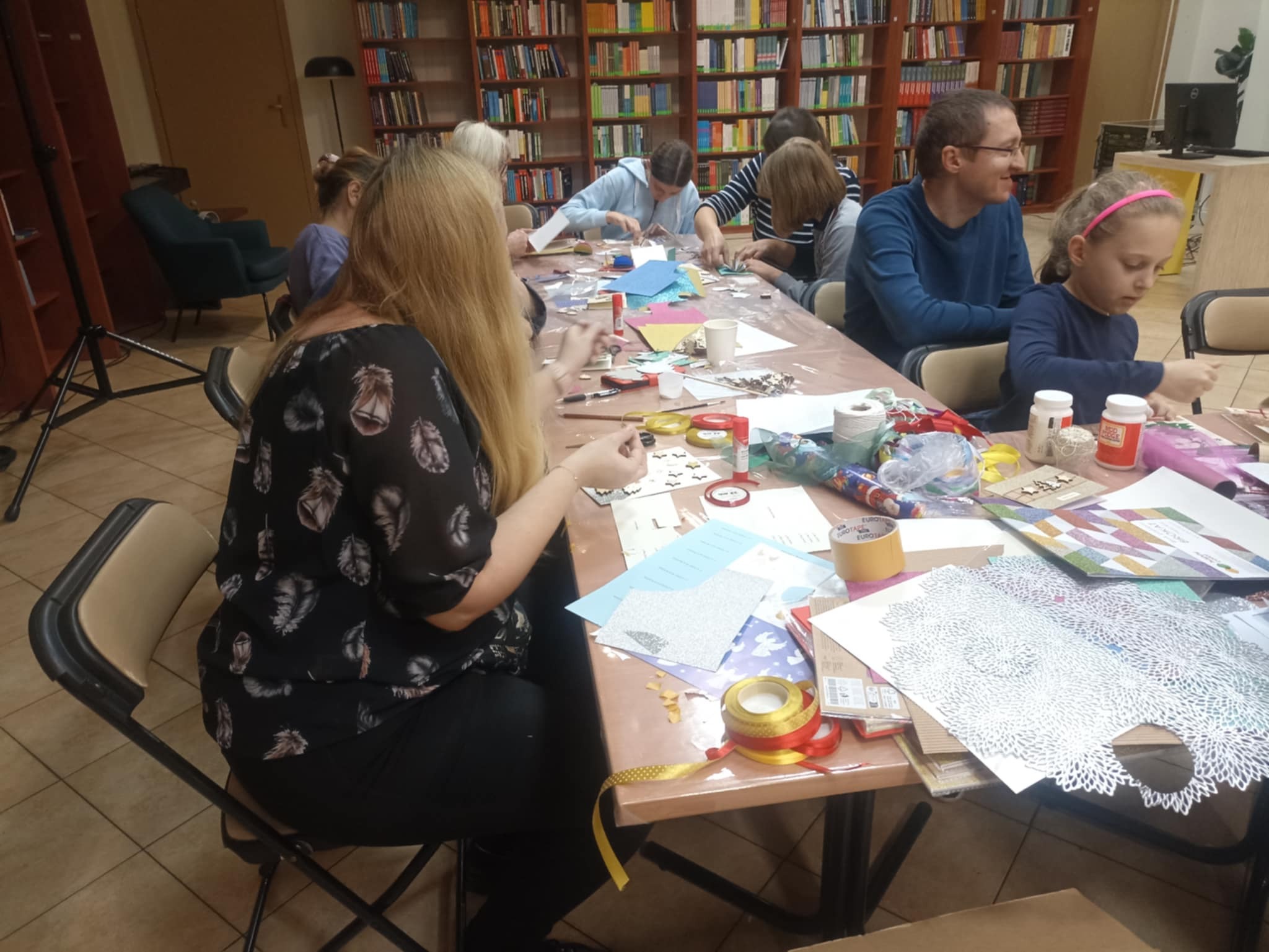 20 listopada 2024 r. w Czytelni Naukowej nr I im. Janiny Englert przy ul. św. Wincentego 85 odbyły się warsztaty plastyczne, które spędziliśmy wspólnie z przybyłymi rodzinami bardzo kreatywnie. Najpierw tworzyliśmy projekt kartki, dobierając formę i materiały do wybranego wzoru. Uczestnicy warsztatów eksperymentowali różnymi technikami i tak powstały piękne rękodzieła. Na zajęciach zarówno dzieci, jak i dorośli mogli rozwinąć pasje, kreatywność, wzbogacić wyobraźnię i ciekawie spędzić czas oraz lepiej się poznać. A w szczególności mogli odpocząć od codziennego pędu i… wyżyć się kreatywnie!