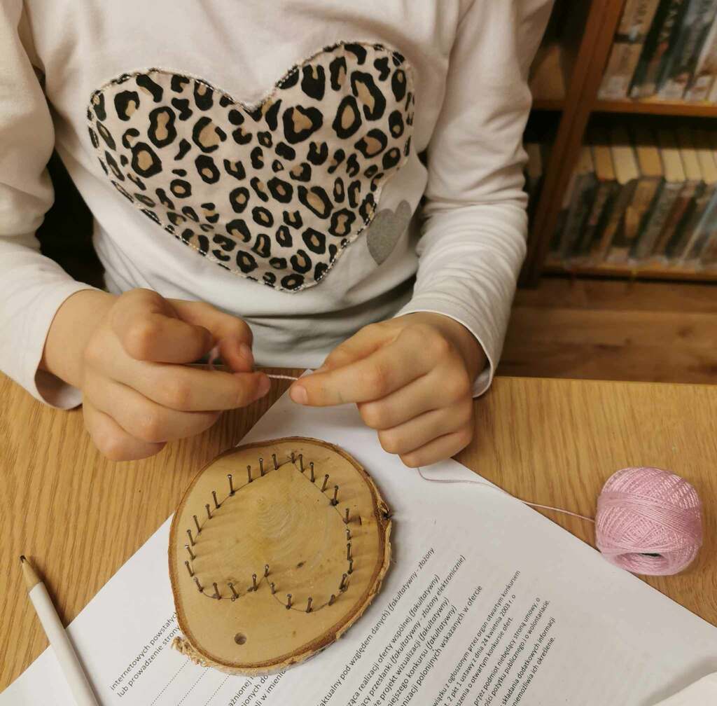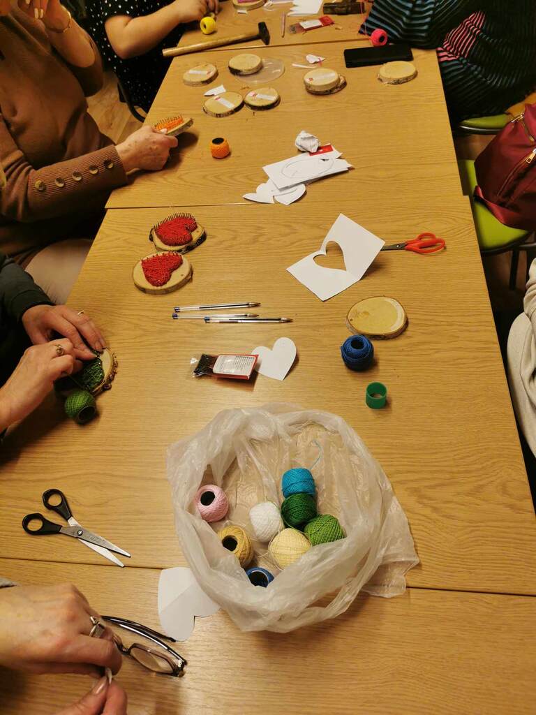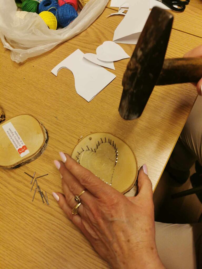 Za nami kolejne warsztaty „Zrób to sam”. 6 lutego 2024 r. Wypożyczalnia nr 37 przypominała prawdziwy warsztat. W ruch poszły młotki, gwoździe i kawałki drewna. Dodatek kolorowej nitki sprawił, że powstały piękne serduszka walentynkowe i inne ciekawe wzory. Uczestniczki zajęć z zapałem, ale i z uśmiechem na twarzy tworzyły swoje dzieła, a pomagały im w tym nasze wspaniałe wolontariuszki, którym bardzo dziękujemy.