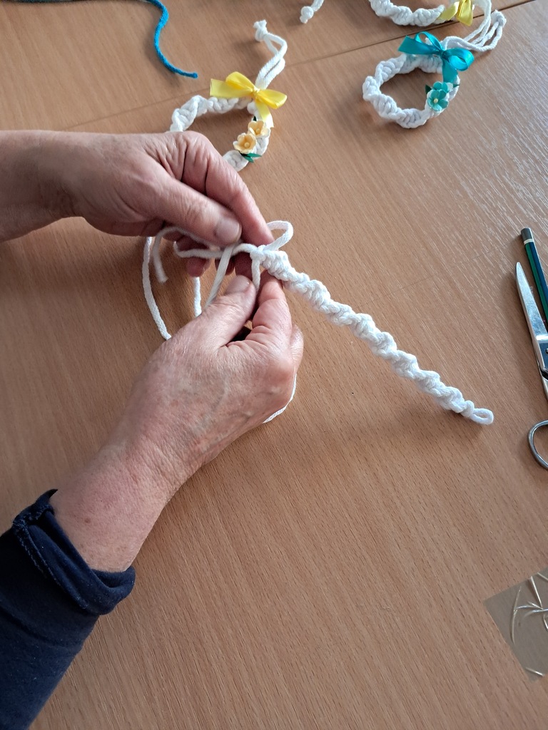 Każdy z obecnych mógł spróbować swoich sił w makramie, odkrywając, jak z kilku sznurków powstają subtelne, naturalne dekoracje. Wspólna praca sprzyjała integracji, a gotowe jajka zachwycały różnorodnością i starannością wykonania.