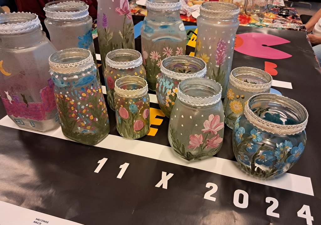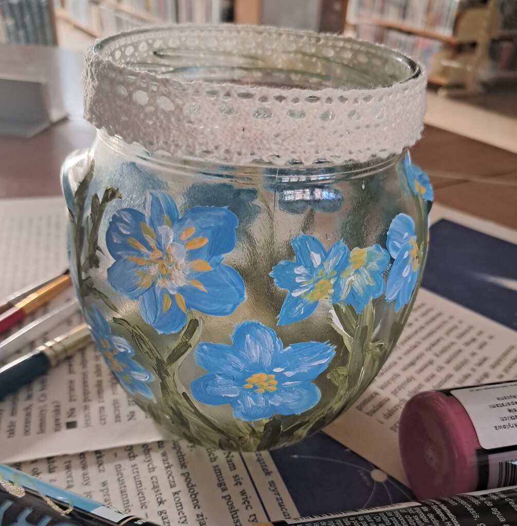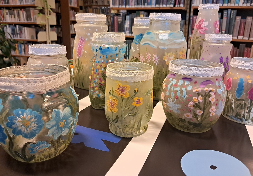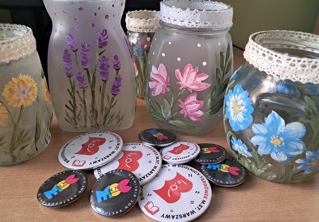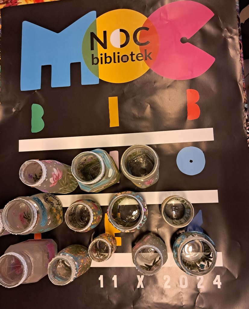 Wypożyczalnia nr 2, przyłączając się do Nocy Bibliotek, zadbała, by moc biblioteki ujawniła się w twórczym malowaniu. Podczas warsztatów, wykorzystując farby akrylowe i słoiki o nietypowych kształtach, stworzyliśmy ciekawe i niepowtarzalne dekoracje. Malowane słoiki zyskały drugie życie. Mogą być przybornikiem na biurko, wazonem, pojemnikiem na drobiazgi, lampionem. Twórcze malowanie słoików przyniosło nam wiele radości i satysfakcji.