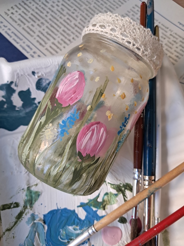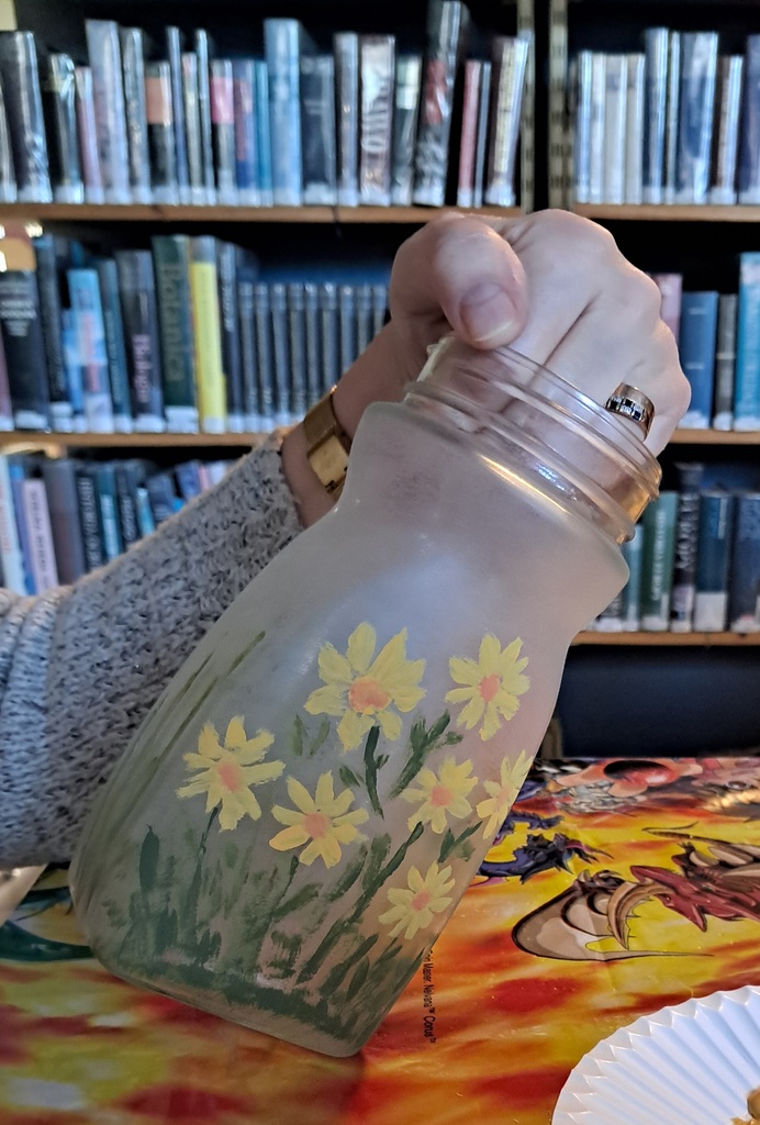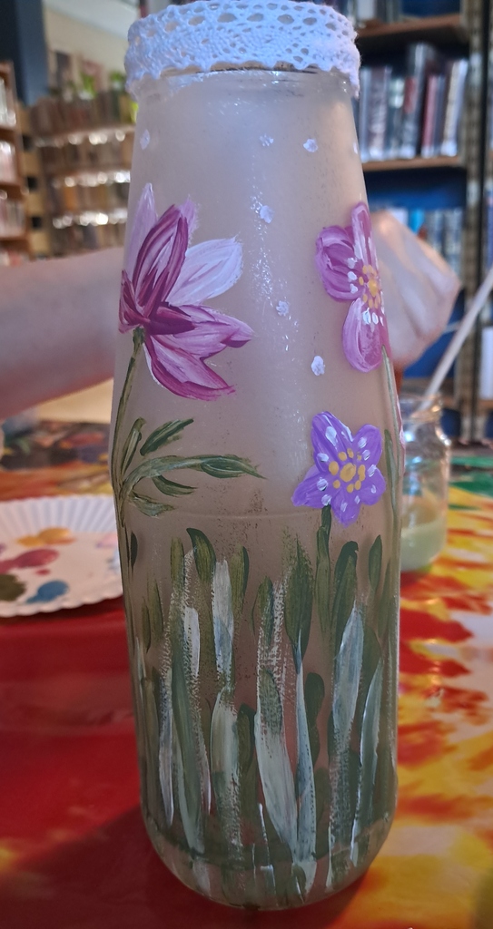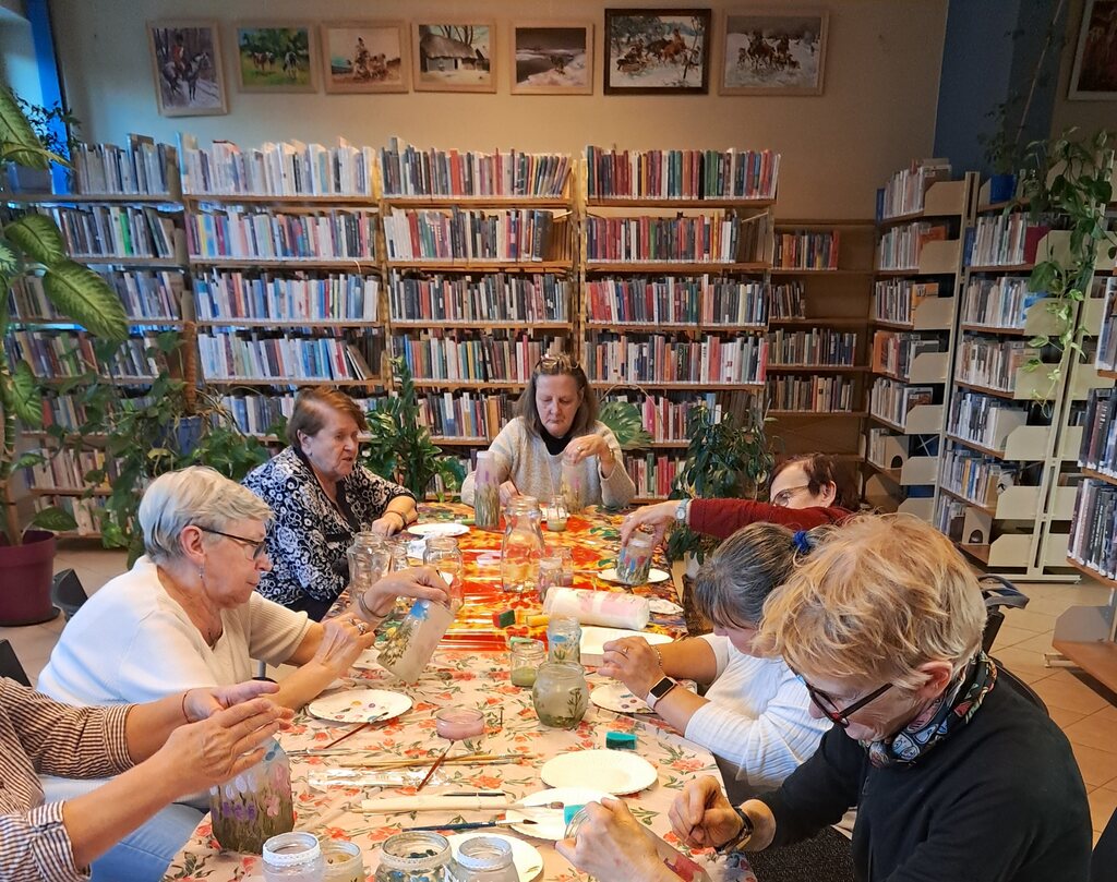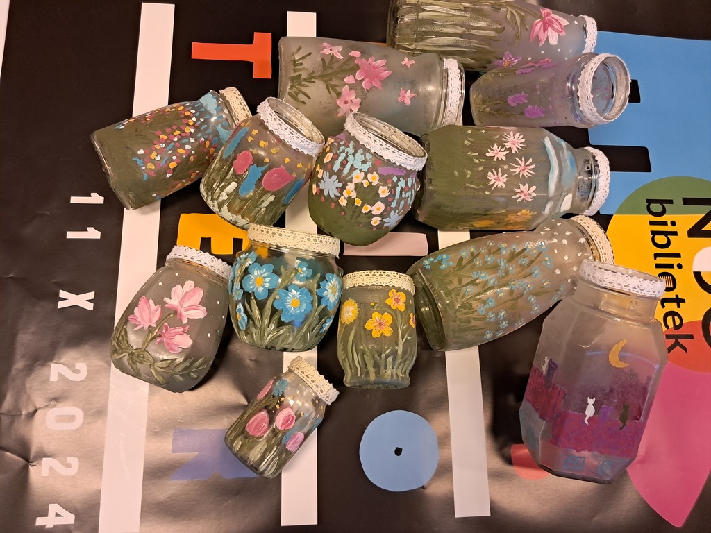 Wypożyczalnia nr 2, przyłączając się do Nocy Bibliotek, zadbała, by moc biblioteki ujawniła się w twórczym malowaniu. Podczas warsztatów, wykorzystując farby akrylowe i słoiki o nietypowych kształtach, stworzyliśmy ciekawe i niepowtarzalne dekoracje. Malowane słoiki zyskały drugie życie. Mogą być przybornikiem na biurko, wazonem, pojemnikiem na drobiazgi, lampionem. Twórcze malowanie słoików przyniosło nam wiele radości i satysfakcji.