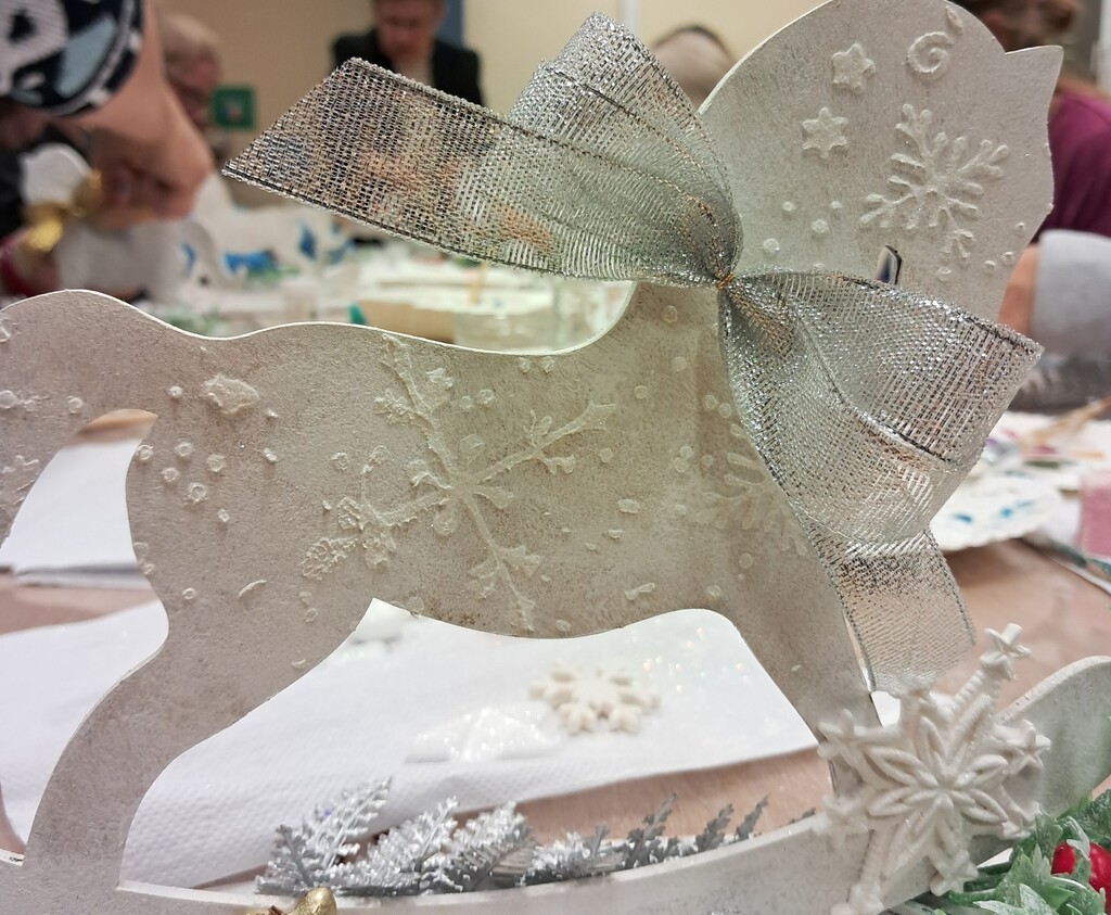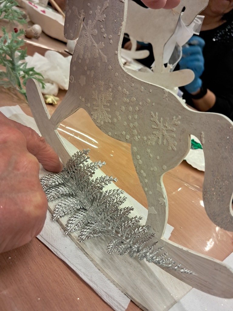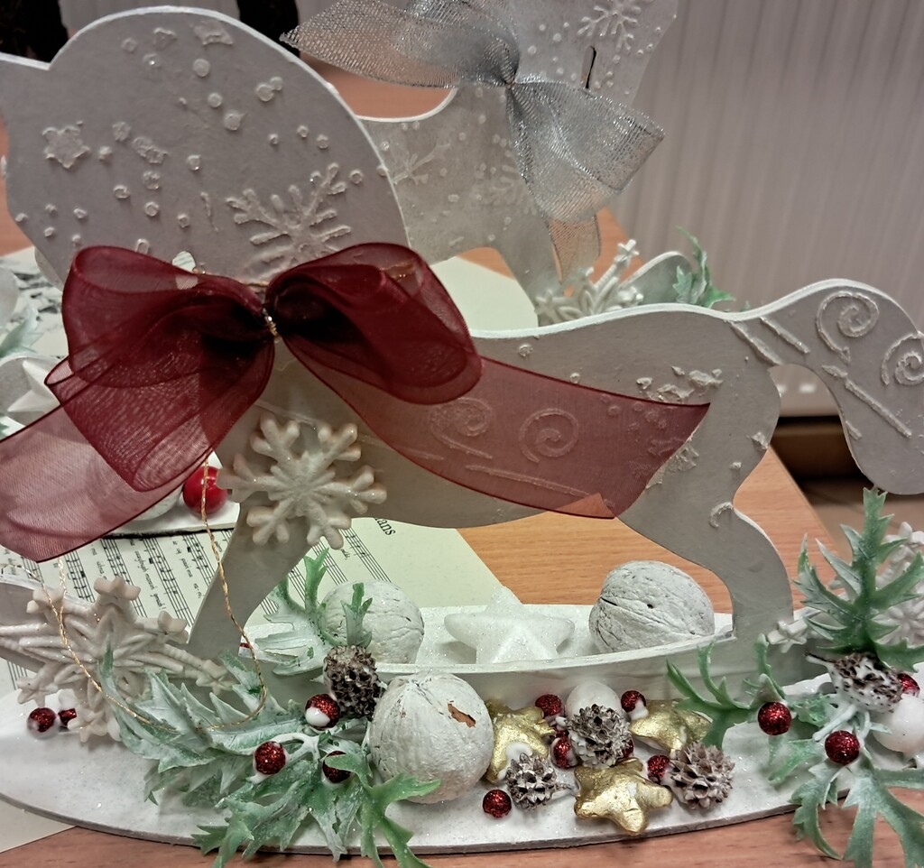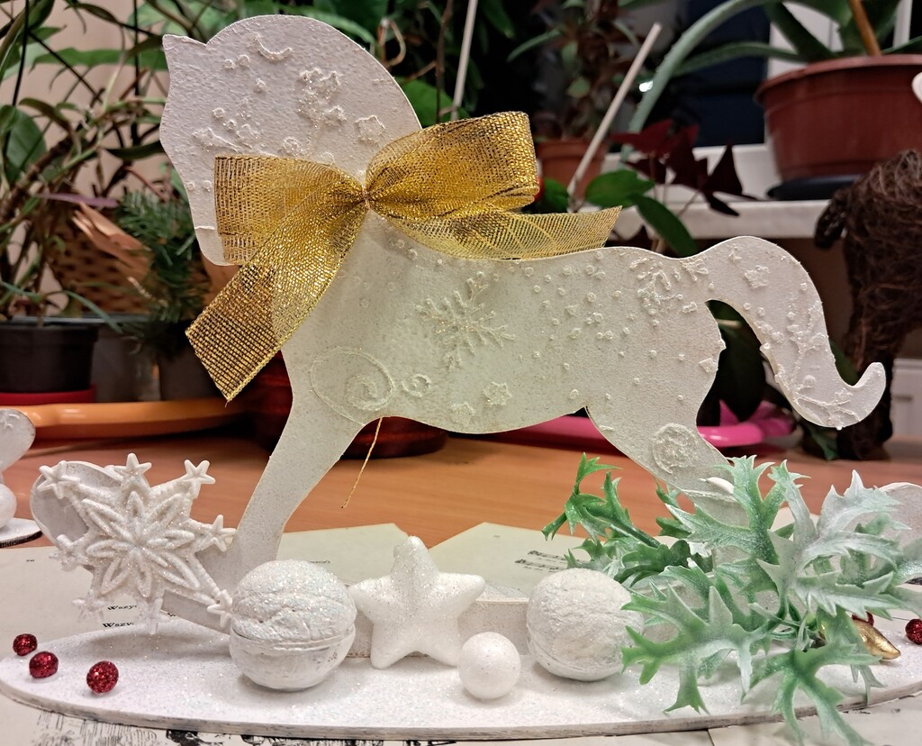 Święta zbliżają się już wielkimi krokami, więc czas pomyśleć o świątecznym wystroju mieszkania. Dekoracja domu na święta to przecież nie tylko choinka. Podczas warsztatów, które odbyły się 10 grudnia w Wypożyczalni nr 2, uczestnicy wykonali świątecznego konika na biegunach techniką mix media. Najpierw konik został pomalowany farbą akrylową, a następnie ozdobiony odlewami z masy lekkiej oraz pastą strukturalną. Całość dopełniliśmy świątecznymi dodatkami. Wyszło pięknie!