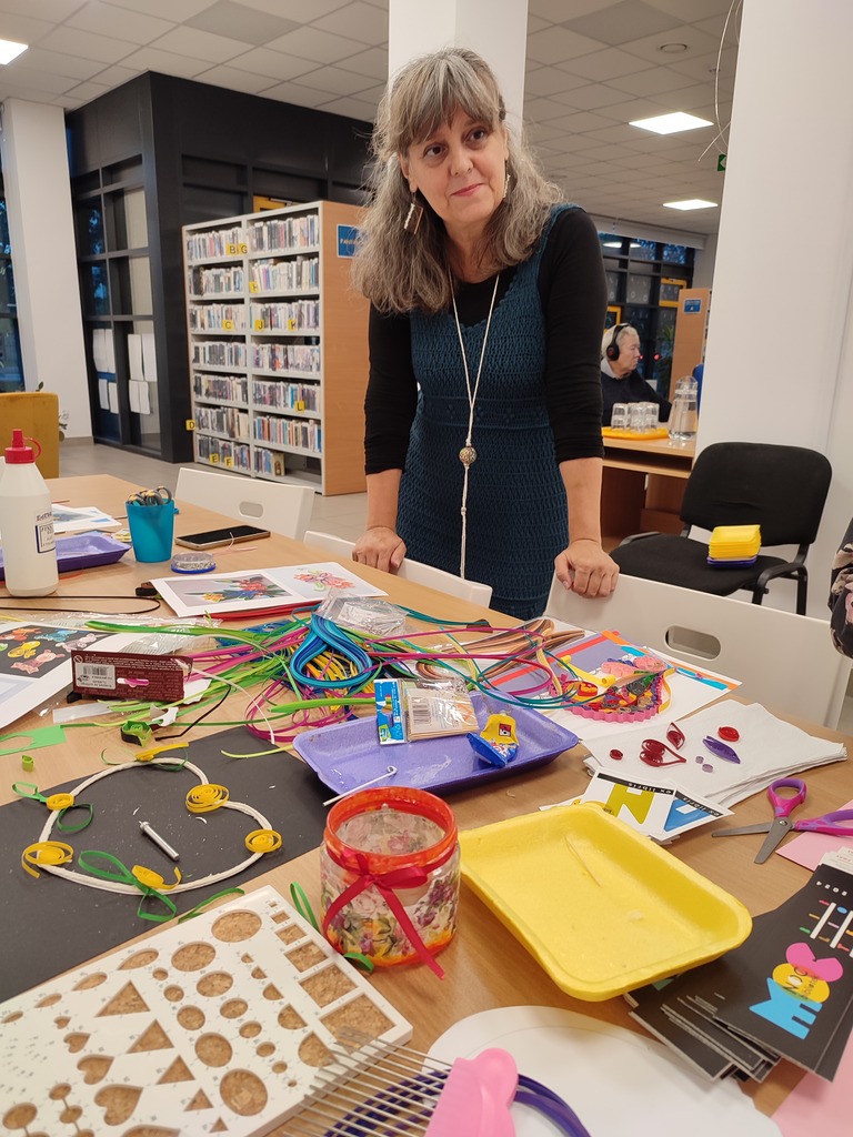 Za nami kolejna edycja Nocy Bibliotek. 11 października 2024 r. w Wypożyczalni dla Dorosłych i Młodzieży nr 64 przy ul. Radzymińskiej 121 byliśmy kreatywnie zakręceni, tworząc papierowe ozdoby prostą, acz wymagającą skupienia i precyzji techniką quillingu. Odpowiednio formując quillingowe paski i łącząc poszczególne elementy ze sobą, uczestnicy warsztatów prowadzonych przez pisarkę i ilustratorkę Agnieszkę Kazałę stworzyli oryginalne, trójwymiarowe obrazki.